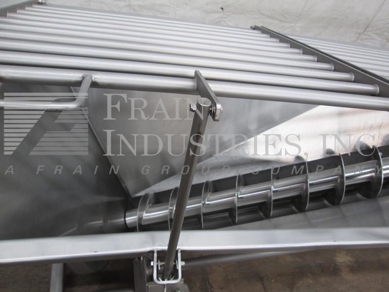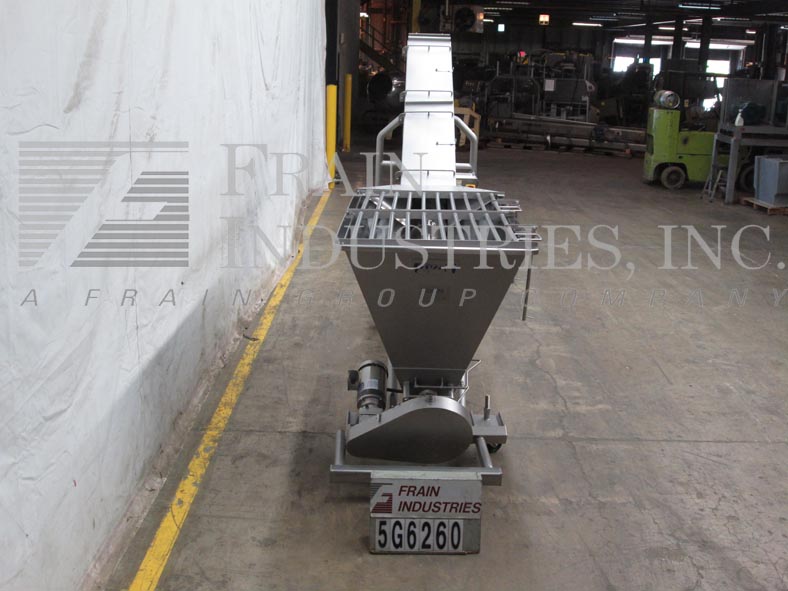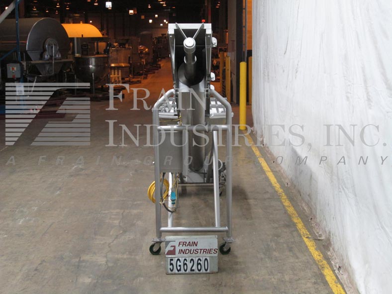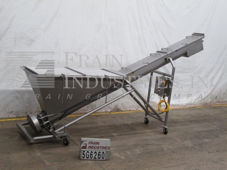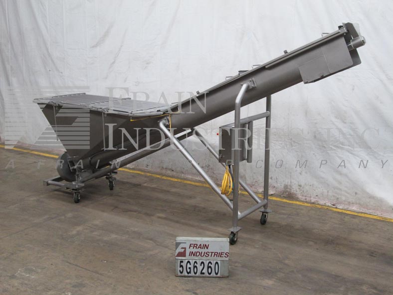 Cozzini,型号CSC1014,304不锈钢,10英寸直径x 150“长,便携式倾斜螺旋输送机。在4½“直径轴上配备了10英寸直径螺钉,6½”中心,11英寸宽船体,70“长x 36”宽x 36“深(约9英尺)供应料斗(55英寸饲料高),73“放电高度和底部安装的2个HP驱动器。带按钮的控制面板启动/停止和运行/慢速拨盘。安装在带锁脚轮的不锈钢底座上。