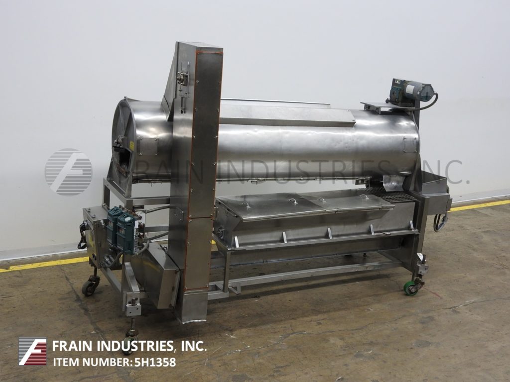 DCA MD121型,连续,不锈钢,粉状,粒状或肉桂糖甜甜圈涂层系统,每小时的甜甜圈数量取决于材料和应用。滚筒规格:21”ID;长度为105",1"长x½"宽内筒性能,55"长x 4¾"宽现场端口。配备12“x 7”装50“高饲料,11”宽放电与37”地板结算,72年底糖回收槽”长x 15“宽x 16”深不锈钢回收苏格本与翻转盖和内/外桨以及3“OD不锈钢底丝杠72”长斗式提升机盖。安装在不锈钢底座上。