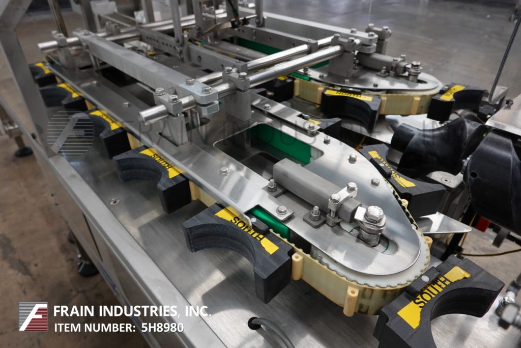 德l Packaging Model ASRL-CC Adjustable spinning rod, overlidder rated from 10 to 90 containers per minute – depending materials and appllication. Lid size range of 2" to 7" OD x 2" to 12" High containers and is capable of placing round, square, rectangular and injection molded overcaps, on straight or tapered walled, flexable, composite, metal or blow molded containers (change parts are required per different size and container change). Equipped with 28" long timing screw in feed, 68" long powered spinning roller lid magazine, multi tier lid magazine feeder and container handling grippers. Control panel start / stop and e-stop push buttons.