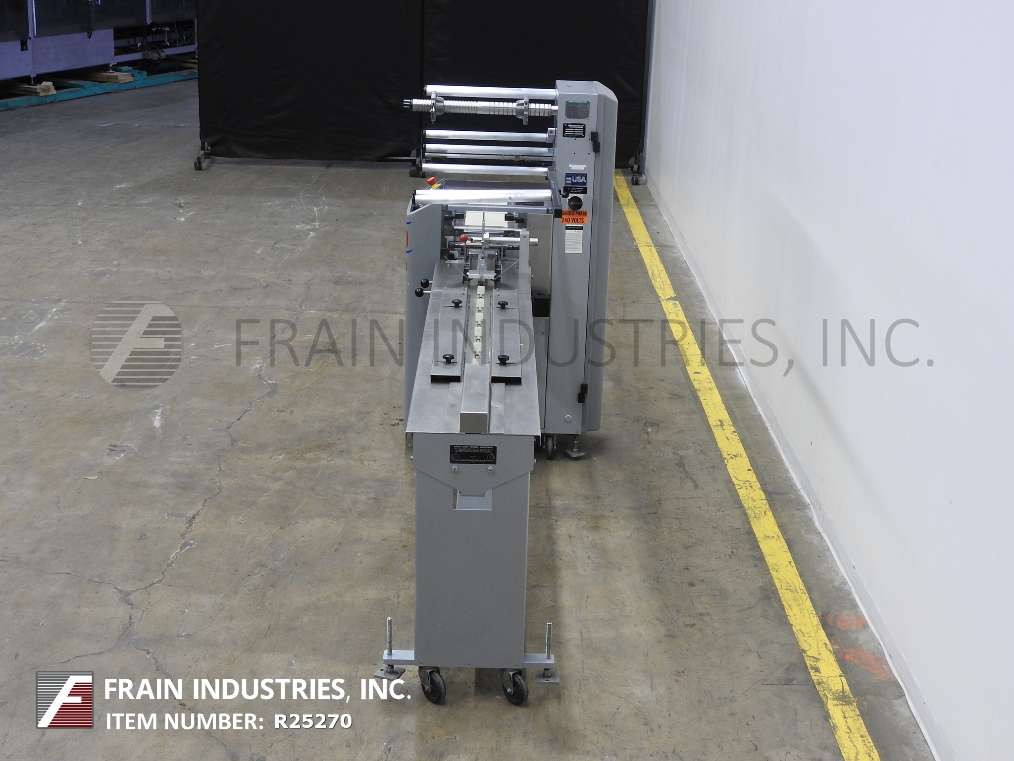 Doboy Medio Super Mustang,自动,水平,流量包装器能够从160到400 ppm的速度 - 取决于材料和应用。封装尺寸范围:长度为2-1 / 2 - 5-1 / 2“;1/2“ - 5”宽度;高达2-1 / 2“高度。配备108英寸的”长“,进料输送机中的挖出链条产品目前在4-1 / 2”中心,有4英寸,4英寸长的X 1“宽卧式密封钳口,双底翅片轮,胶片配准,双胶芯片,20“L薄膜辊和30”L X 7“W放电输送机。特点A / B PLC具有带数字读数(3)Watlow温度控制器的Swing ARM触控垫控制器,用于上部,下压接和翅片密封件和滑动密封区域Saftey Lacking。