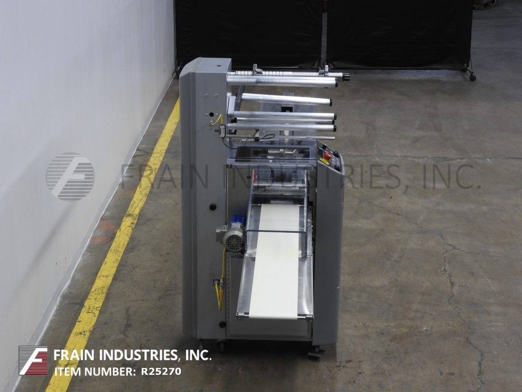 Doboy,型号CBS-CH,左侧,连续运动,连锁频段封口率从0到425英寸的每分钟额定产品数量 - 取决于材料,应用和操作员灵活性。配备修剪器,(2)套“宽热封杆和(1)水冷的冷却棒,倾斜头,1”宽金属带,翻转安全盖和链条采用更好的袋子支撑件。用加热器1和加热器2温度控制器控制面板和开/关加热开关。安装在带脚轮和手动曲柄高度调节的底座上;包括8“宽x 142”长的长风带式传送带。