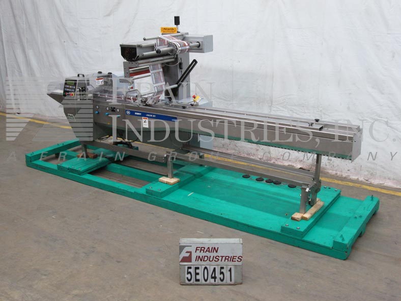 Doboy Linium 301,伺服驱动,水平流量包装器每分钟50到300包 - 取决于材料和应用。产品:长度为3.5“至7.25”;宽度0.4“至6.9”;高达2.5英寸的高度,具有适当的变化零件。有77“长单链铺设速度0.75”高凸耳,2升7英寸宽的密封钳,具有1.5“垂直间隙,32”长x 6“宽排放带,电影高达23.6英寸宽,电源送胶辊,e-stop,按液晶显示屏,胶片登记,状态指示灯,温度控制器和lexan屏障界面的按钮操作员界面。安装在不锈钢和环氧涂层框架上,高度可调节脚。