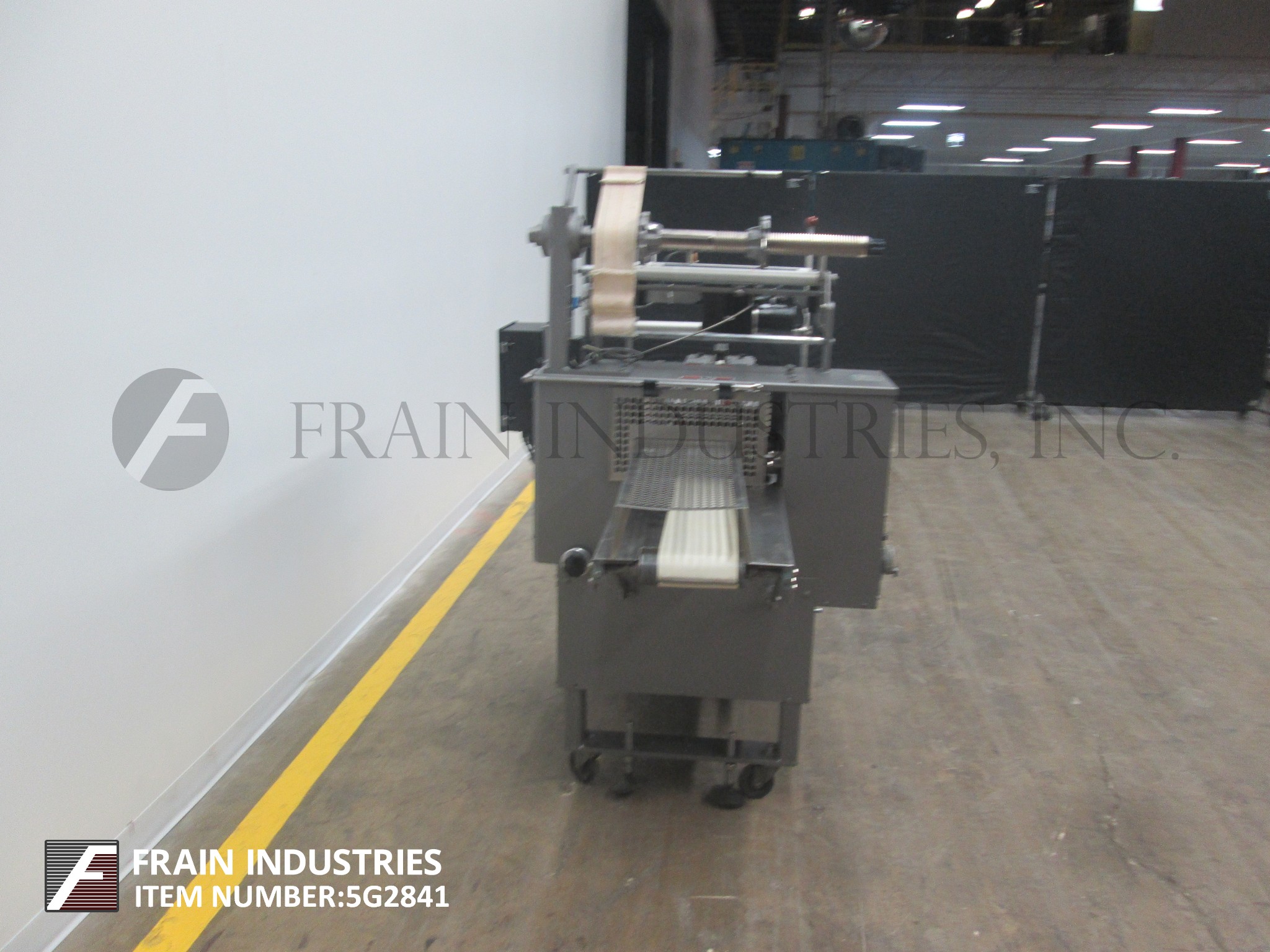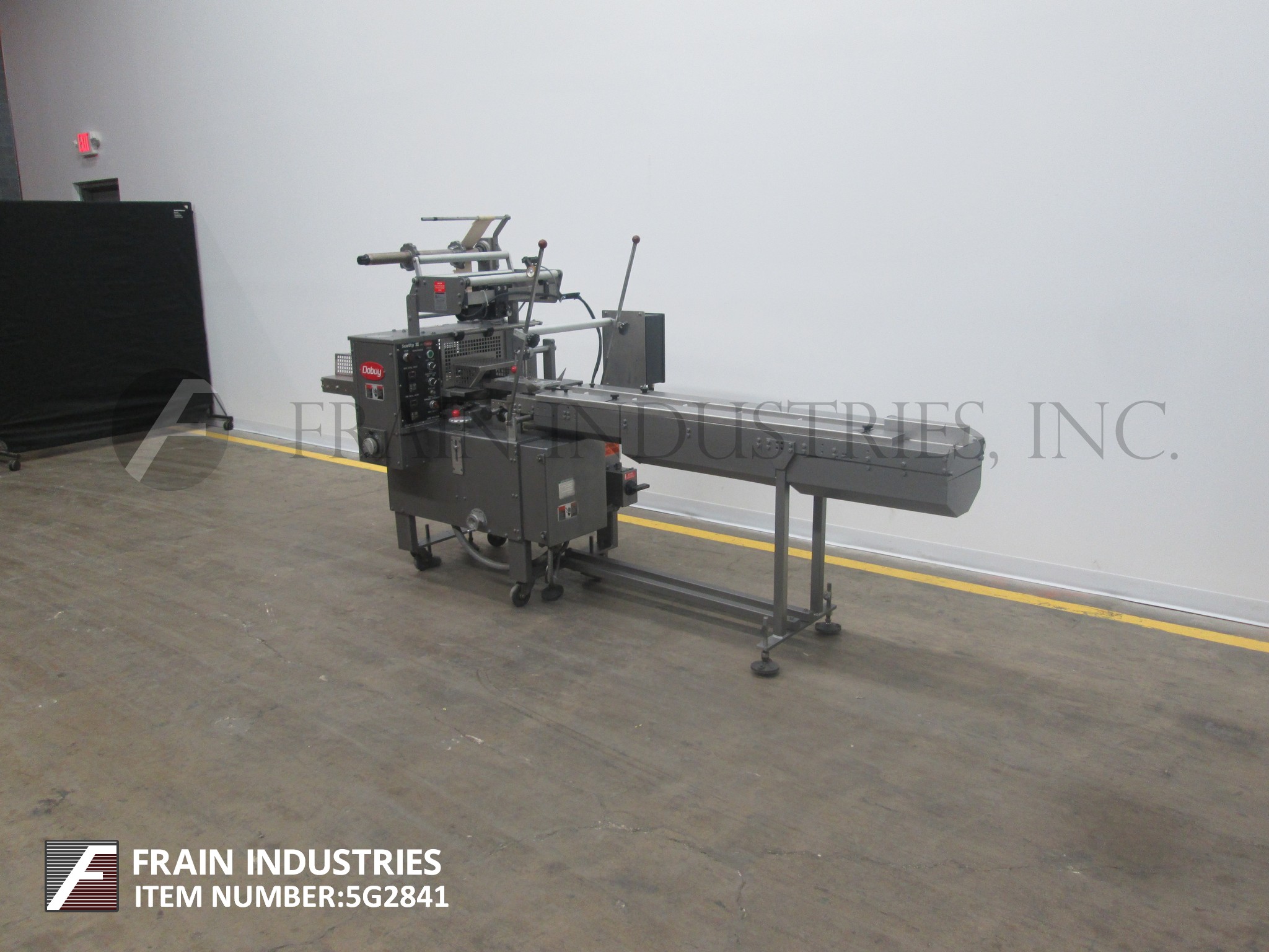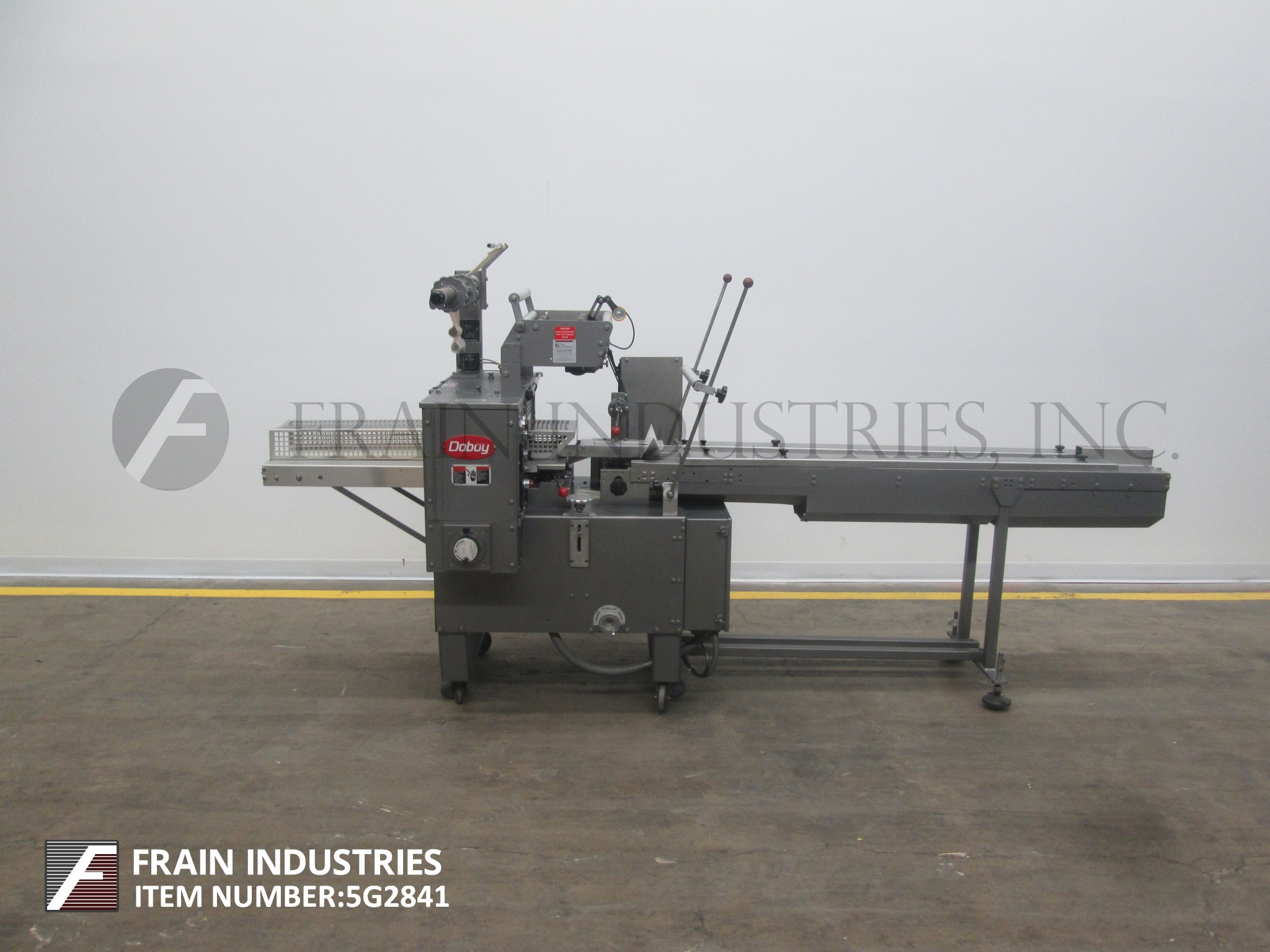Doboy, Model Mustang IV, 2-up,卧式包装额定每分钟30至150包-取决于材料和应用。包装尺寸范围:3"至18"长度;½"至6"宽度;1/16“到3¾”的高度。配备200"长的运输链在饲料与1"高凸耳在5"中心,薄膜注册,成型站,(3)组鳍轮(2)拉(1)密封,7"宽2向上十字密封钳,不锈钢安全保护。控制面板与密封颚温度控制器与开始,停止,e-停止按钮控制,和54“长× 7”宽卸料输送机。安装在基础框架与锁定脚轮和水平腿。薄膜规格:宽度可达20英寸;高达16英寸直径,3英寸芯。