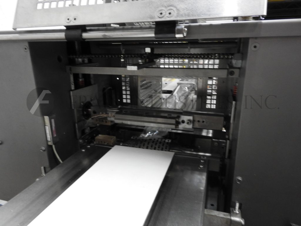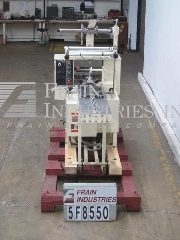 Doboy,卡片,卷,扁平板。每分钟80到200卡 - 取决于材料和应用。卡尺寸范围:3“至5½”的长度;3“到8”的宽度。配有薄膜开/关开关,穿孔开/关开关,e-stop和最多9英寸宽卷库存,带有6“芯,具有28”最大辊直径。9¾“长驱动滚筒和卡截止。操作卡片序列从供应辊和推动滚筒中拉动,将卡片存入截止到较小的碎片中,并在产品包裹之前沉积在包装器进料输送机上。