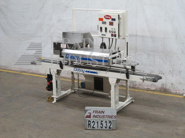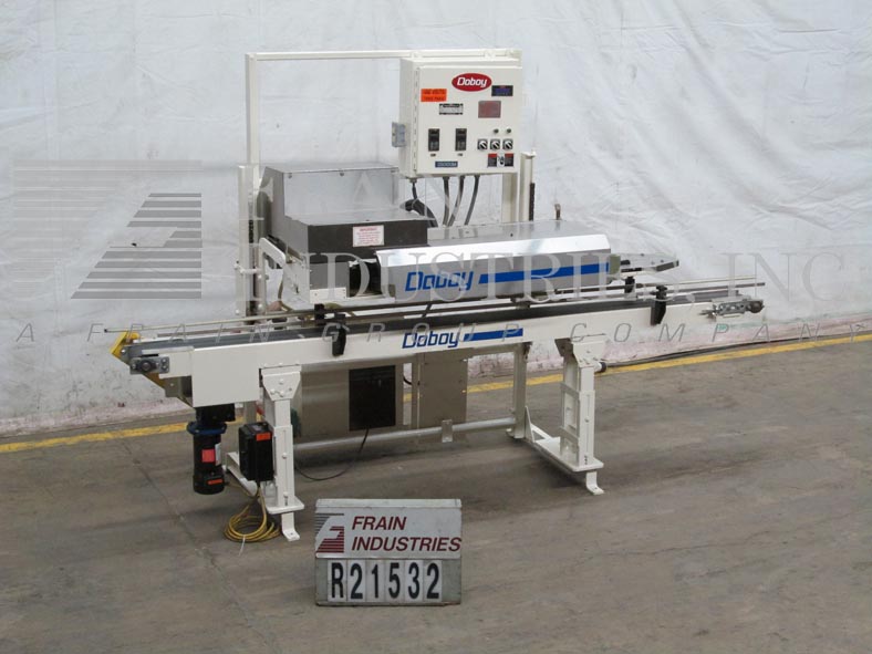 Doboy型号GS1000S,高速,安装在传送带上,双折,热熔,袋封口机额定从0到100英尺每分钟,袋的数量取决于材料和应用。袋大小范围:3磅至20磅,袋宽:3.5"至15"。带顶袋链,外胶封座带热熔胶点胶器,(2)3/4"折边和42"压缩段,旋转剪切器和手动曲柄高度可调。控制面板,运行/慢跑,胶枪,胶热开关,温度控制与Lexan安全防护。安装在(4)腿高度可调框架上。