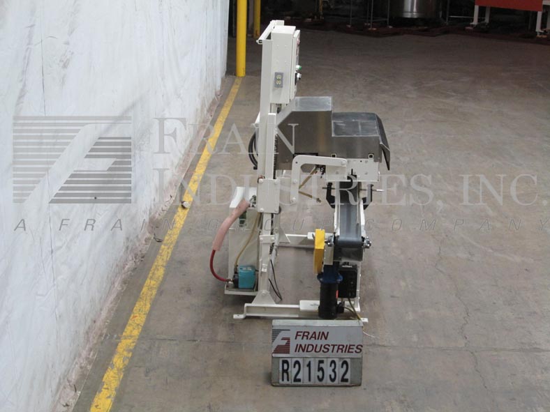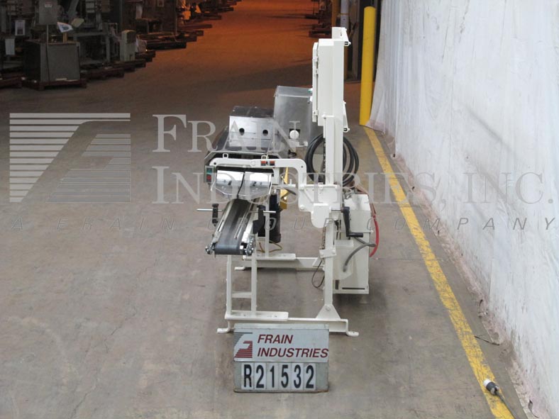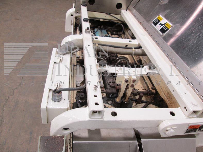 Doboy型号GS1000S,高速,安装在传送带上,双折,热熔,袋封口机额定从0到100英尺每分钟,袋的数量取决于材料和应用。袋大小范围:3磅至20磅,袋宽:3.5"至15"。带顶袋链,外胶封座带热熔胶点胶器,(2)3/4"折边和42"压缩段,旋转剪切器和手动曲柄高度可调。控制面板已运行/慢跑,启动和e-stop按钮,胶枪,胶水和胶水开关,温度控制和lexan安全守卫。安装在(6)腿部框架上