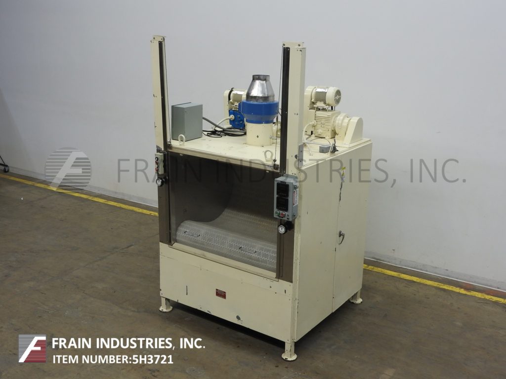 DT&G皮带涂布机,不锈钢,塑料带,多向涂布鼓。容量:2.75英尺。批量尺寸:高达120磅。泛尺寸:15“直径; 24”,宽度;24“高度。配备可变速度控制,不锈钢导轨和可拆卸滴水盘。安装在不锈钢框架上。
