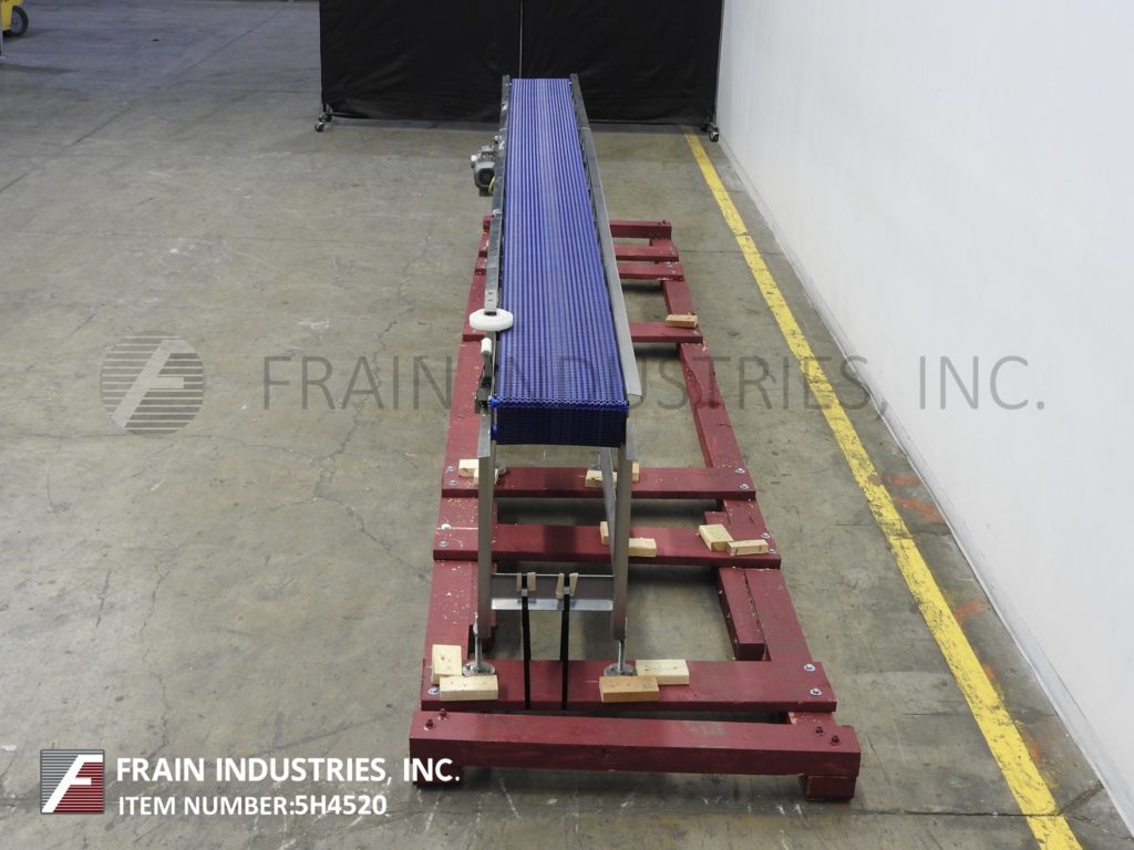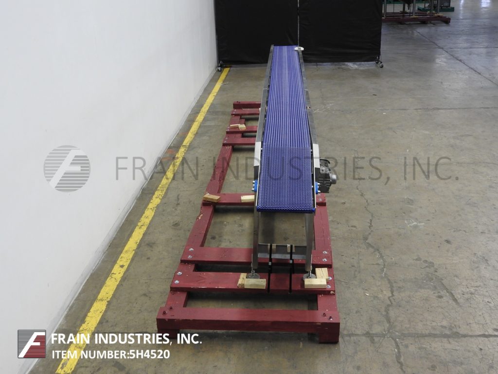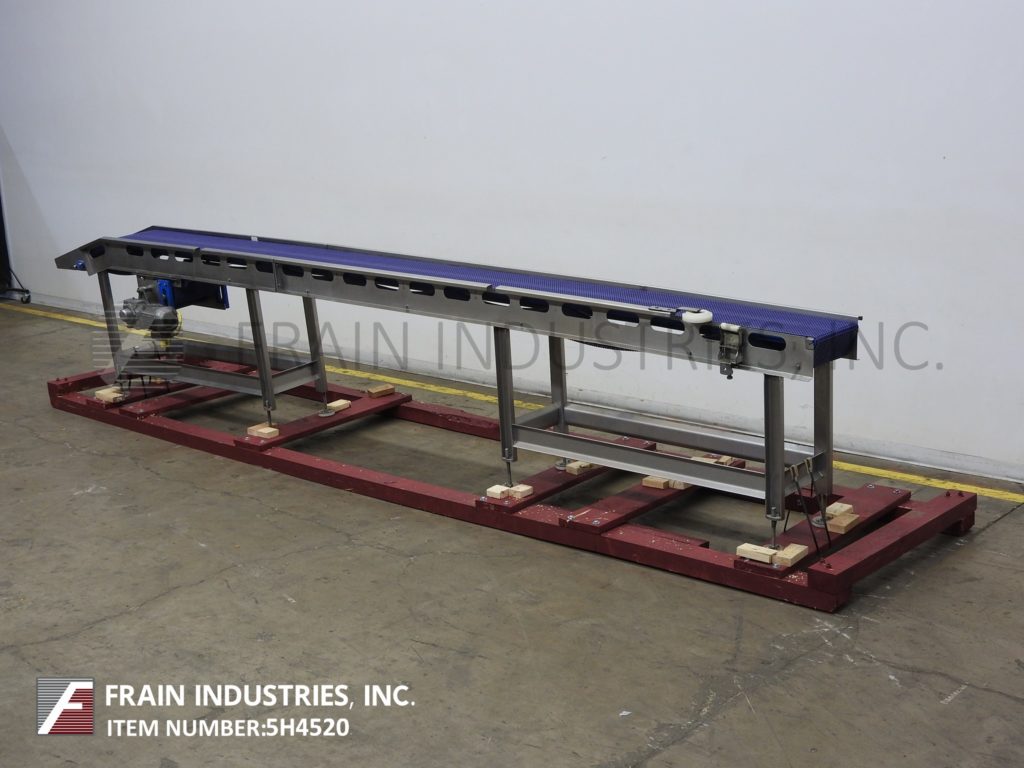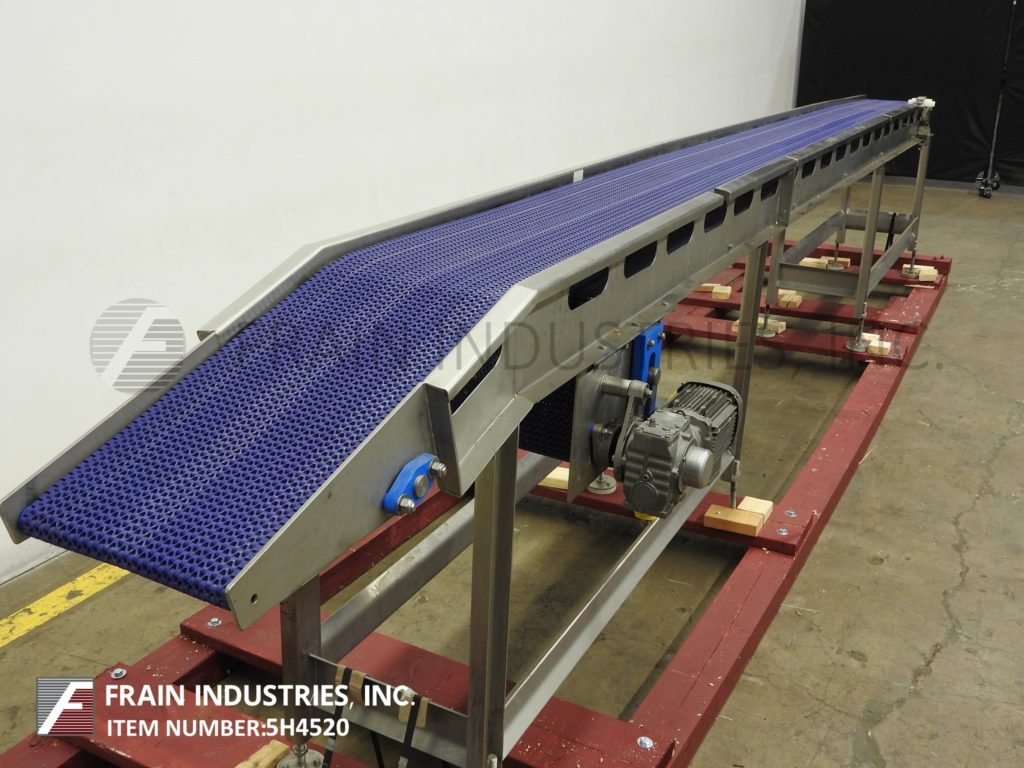 E-妙语,不锈钢,表顶部输送。配备有13¾" 宽×234" 长带具有26" 长倾斜/下降部分和208" 长的水平长度。动力由1马力驱动器和安装在具有36" 的进给/排出范围调平腿44" 。