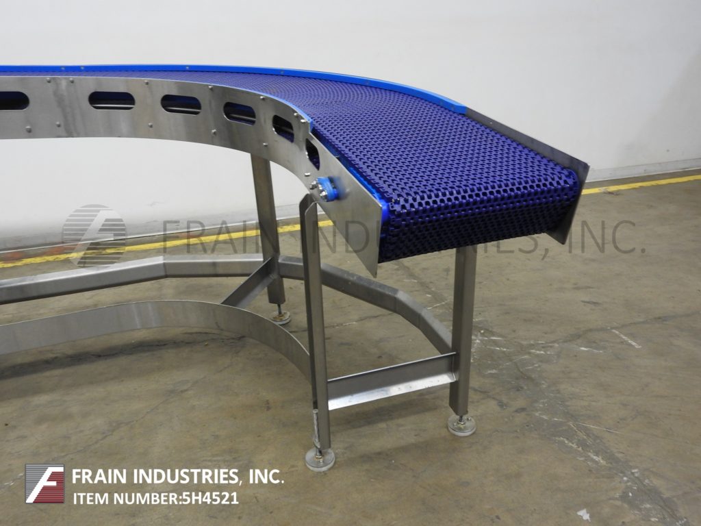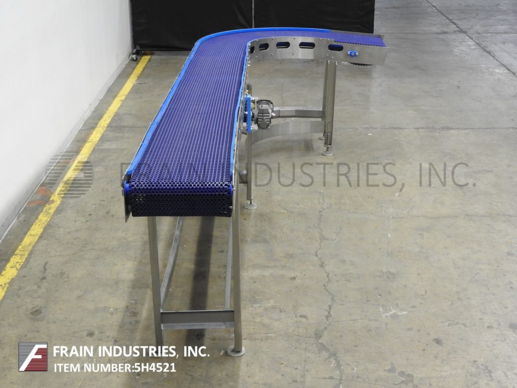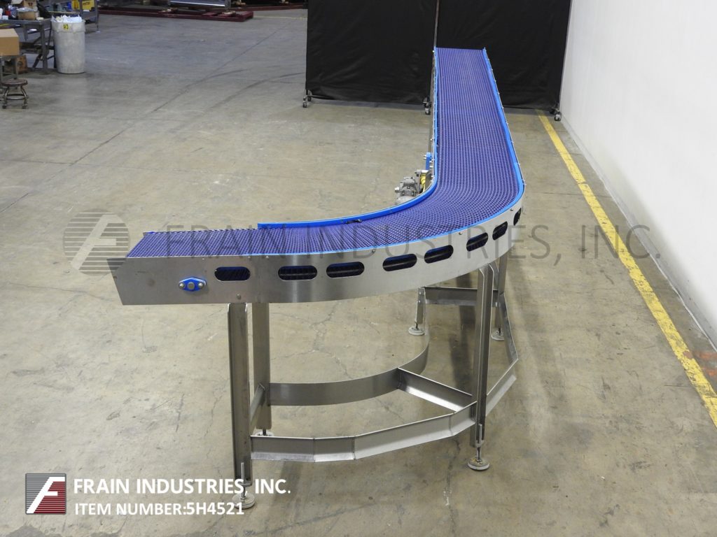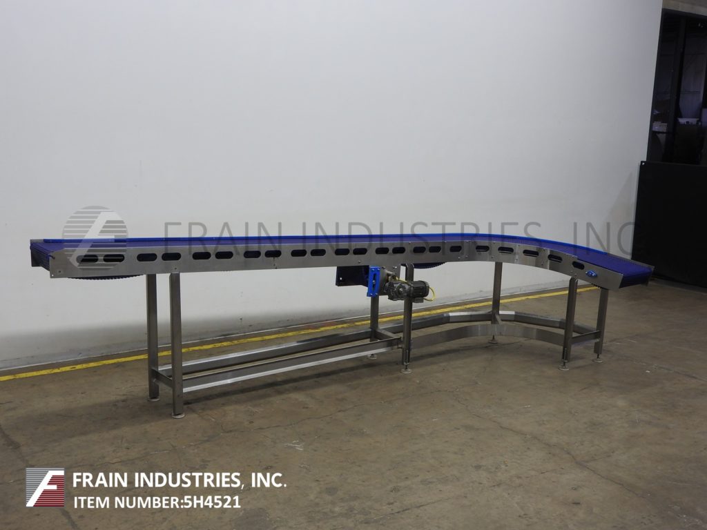 E-妙语,17½" 宽x 245" 长,90°弯曲的不锈钢输送。配备有165" 直段长为90°的曲线,24" 长的直部分。动力由1个HP驱动器和安装在调平脚。