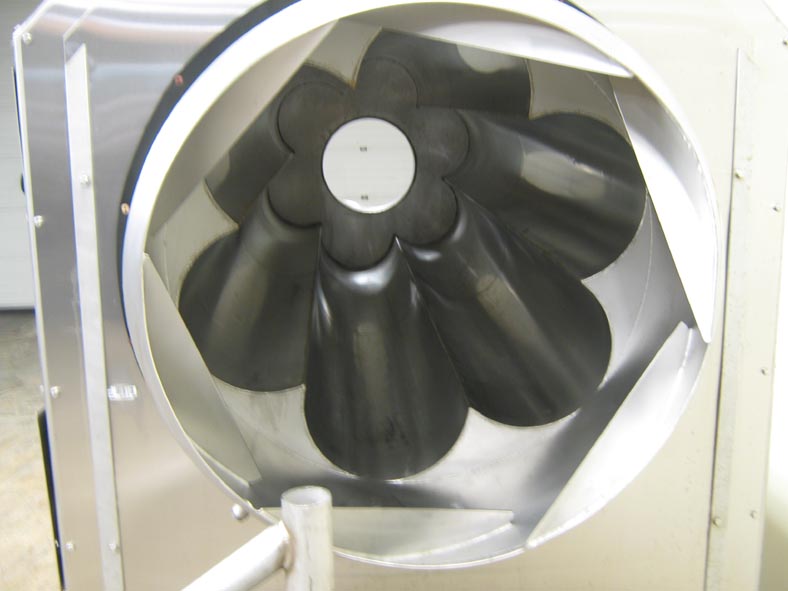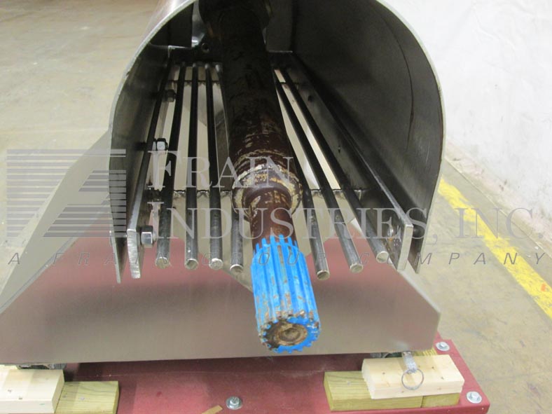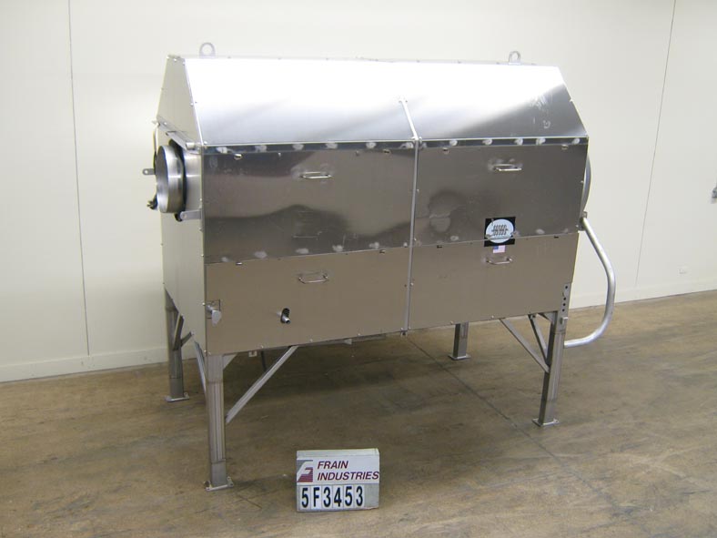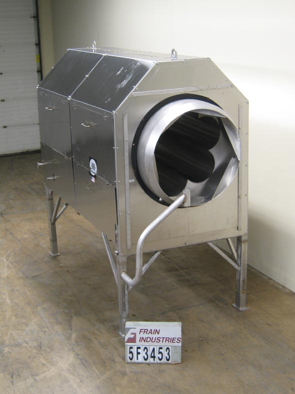 不锈钢,连续运动,圆柱形涂布鼓。内鼓尺寸:长度为42英寸;长度为120英寸。配备18英寸的挡板间隙,六个5-1 / 2“高挡板,37”直径室,以及带有54“落地间隙的放电。另外,在滚筒下具有蒸汽线圈以加热产品。安装在不锈钢框架和腿上,前腿是高度可调节,用于鼓倾斜调节。