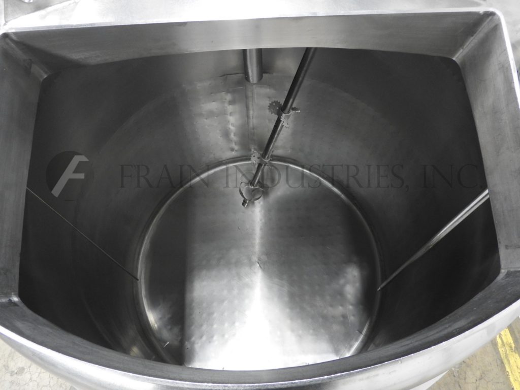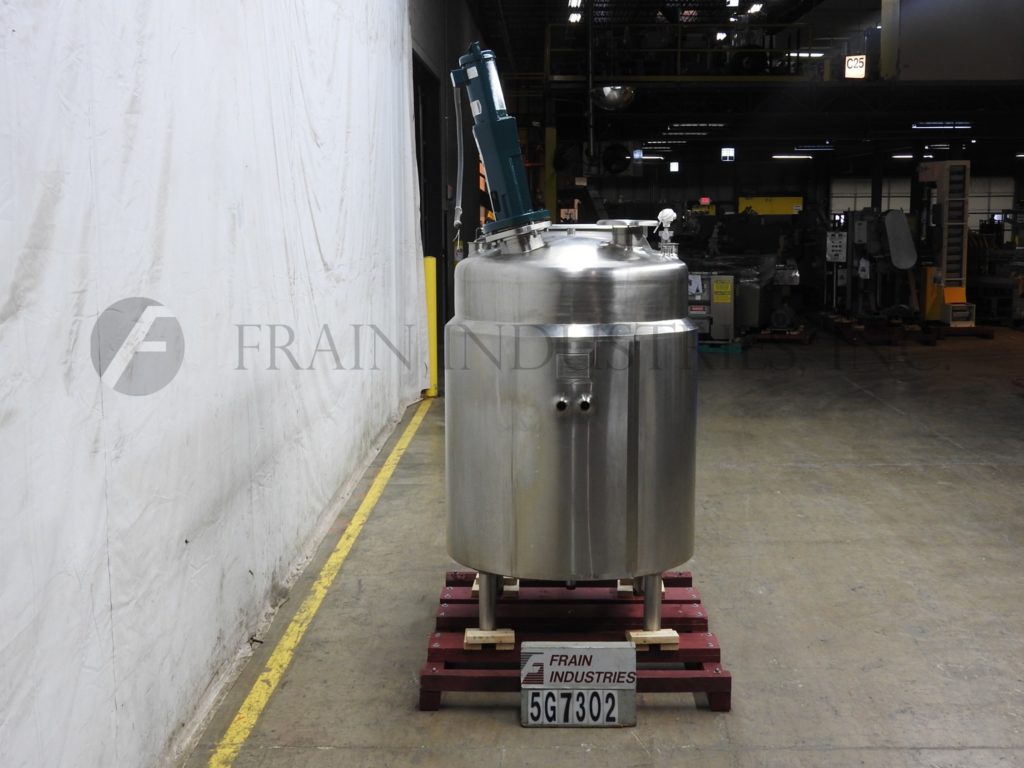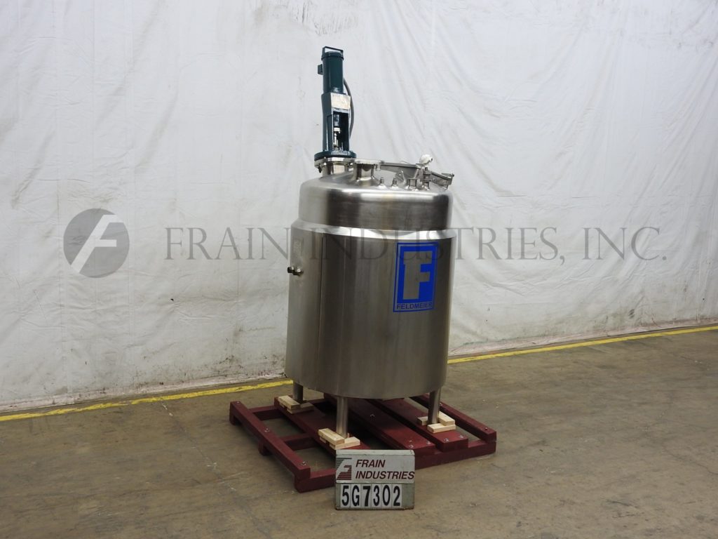 费尔德梅尔,300加仑工作容量,304不锈钢护套和绝缘罐。容器尺寸:48"直径x 52"深斜底。配备24英寸x 16英寸的人道,带翻转盖,(2)水平传感器,44英寸x 2英寸的视镜和3马力顶部安装的支柱搅拌器。单元安装在(4)支腿上,具有3½”外径/ 3”ID三夹式前放电,具有15”接地间隙。