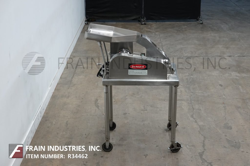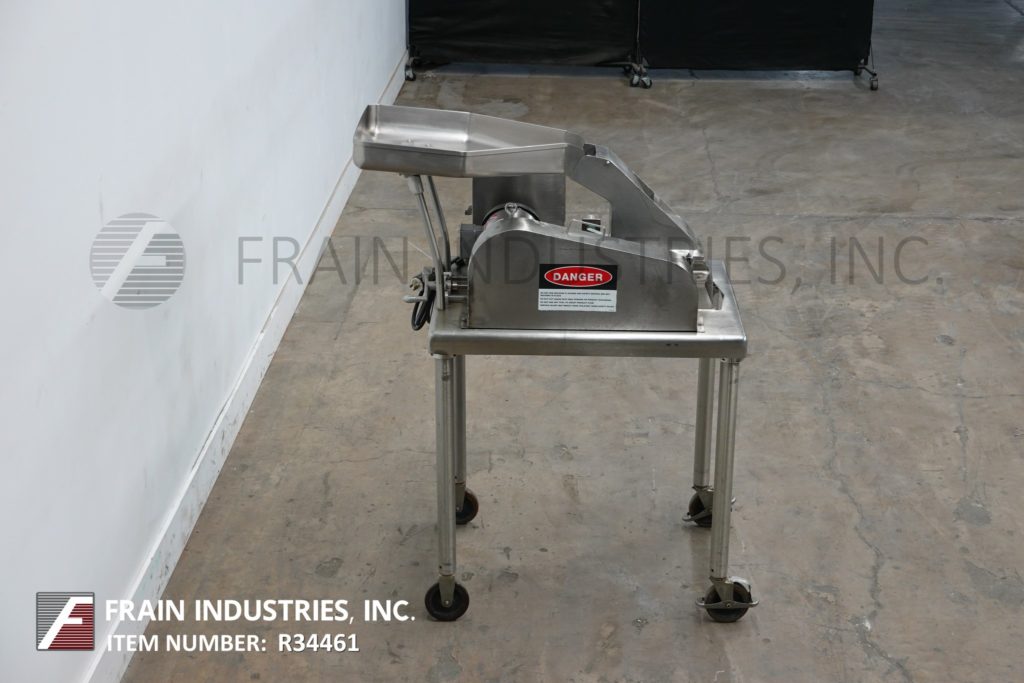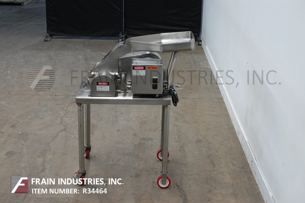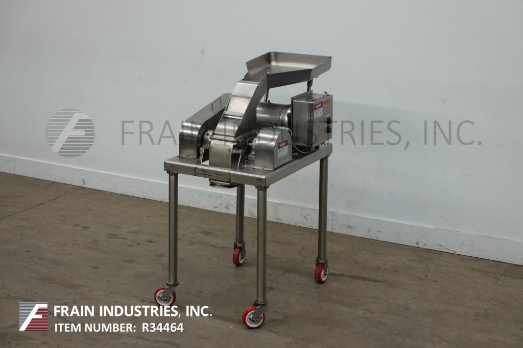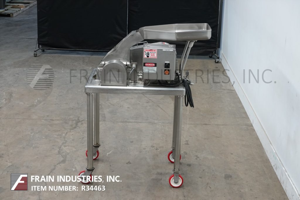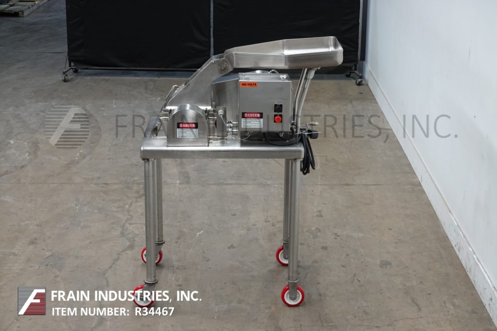 菲茨米尔,型号DAS06,不锈钢锤式磨机,每小时的生产速度取决于材料,应用和机器配置。配备26"长x 20"宽x 4"深进料盘,6"宽x 4"高进料喉部和(16)固定刀/冲击刀片,由7½Hp电机驱动。产品排放是15½“长x 5½”宽36“地板净空。具有启动/停止和e-stop控制。安装在不锈钢(4)腿架上。