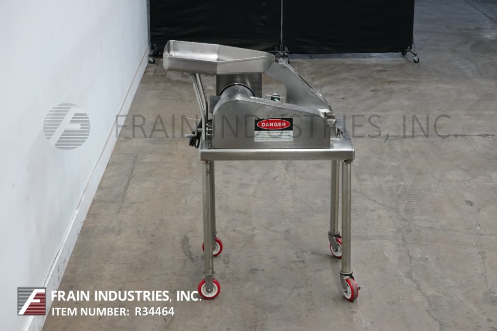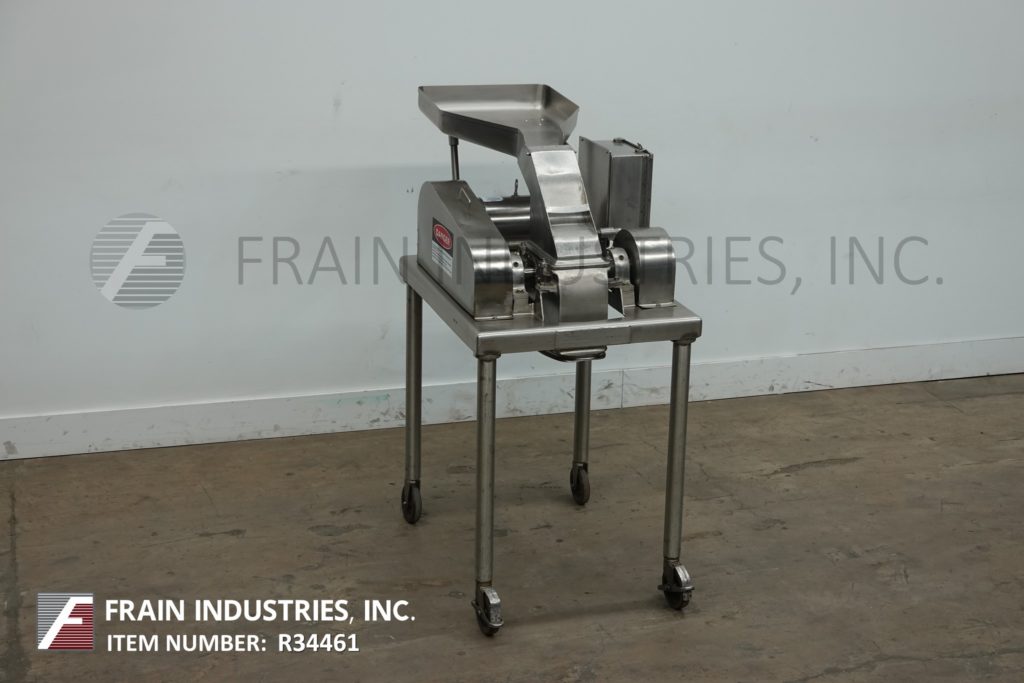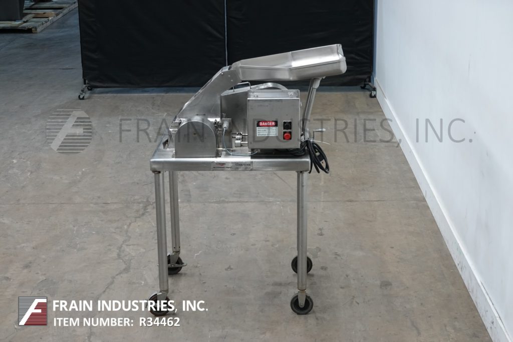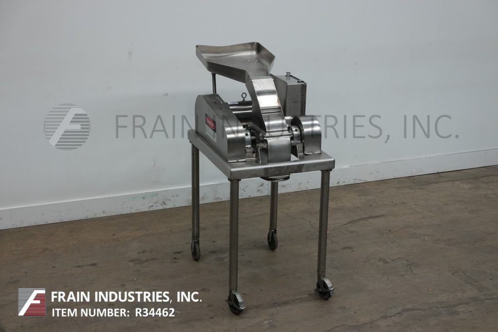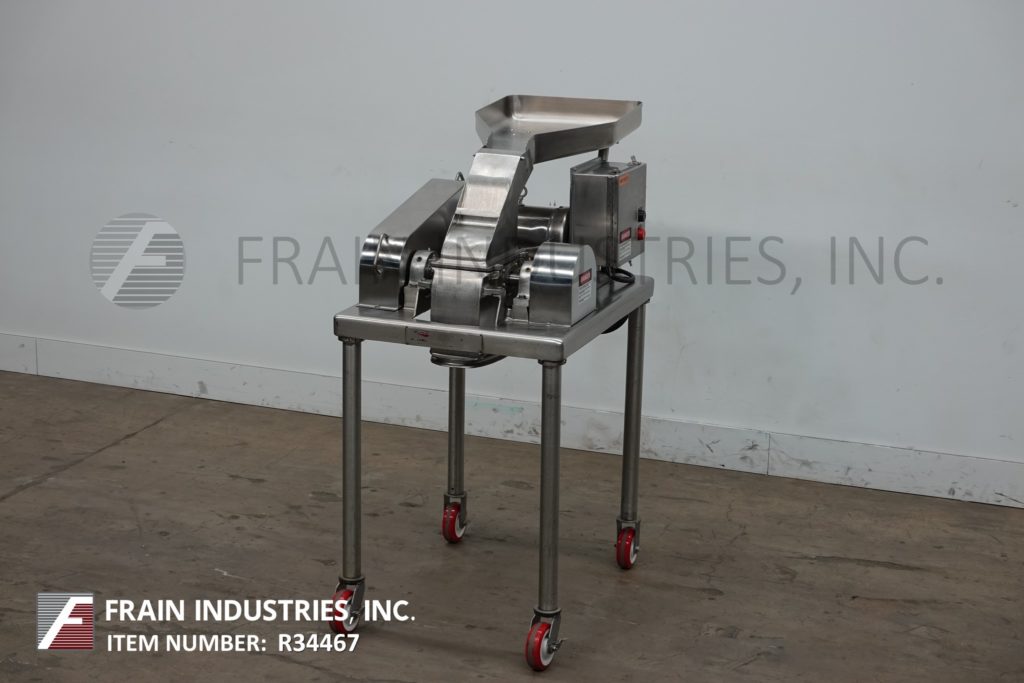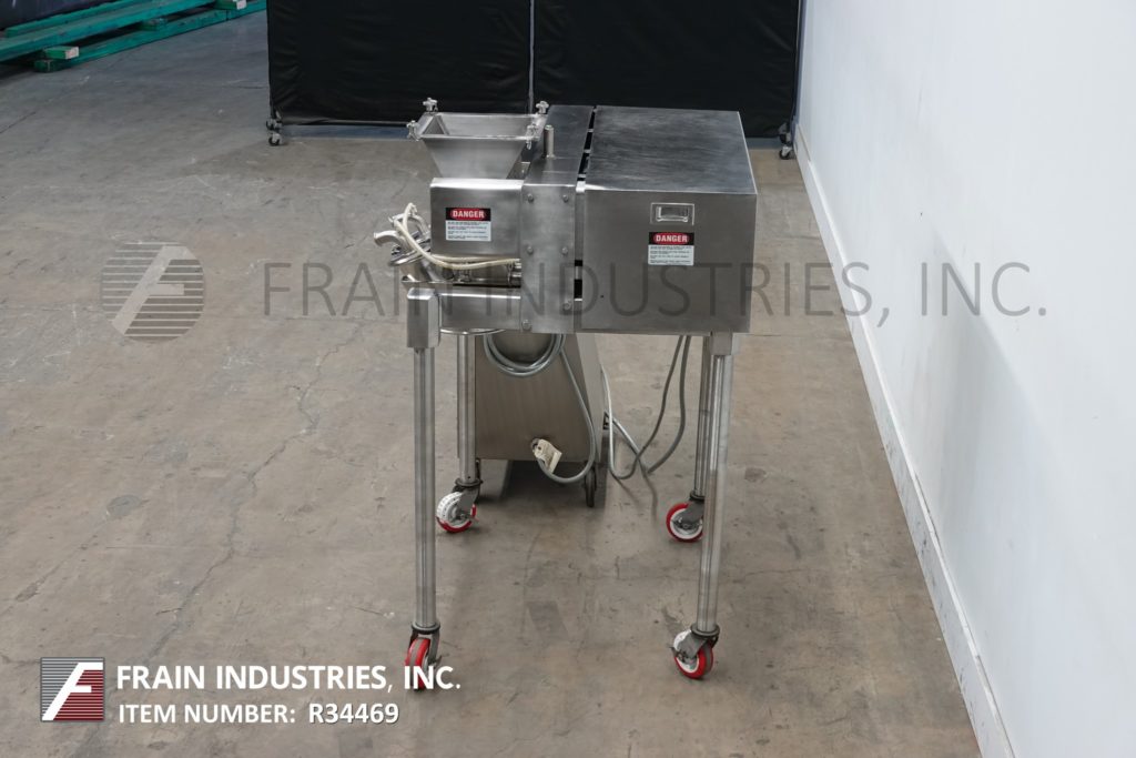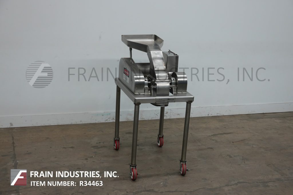 菲茨米尔,型号DAS06,不锈钢锤式磨机,每小时的生产速度取决于材料,应用和机器配置。配备26"长x 20"宽x 4"深进料盘,6"宽x 4"高进料喉部和(16)固定刀/冲击刀片,由7½Hp电机驱动。产品排放是15½“长x 5½”宽36“地板净空。具有启动/停止和e-stop控制。安装在不锈钢(4)腿架上。