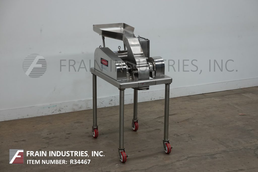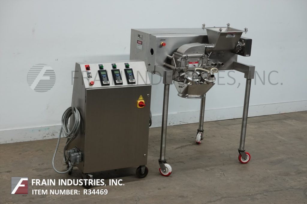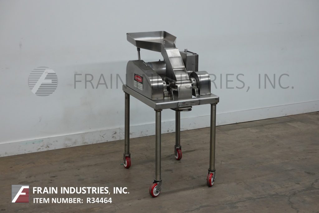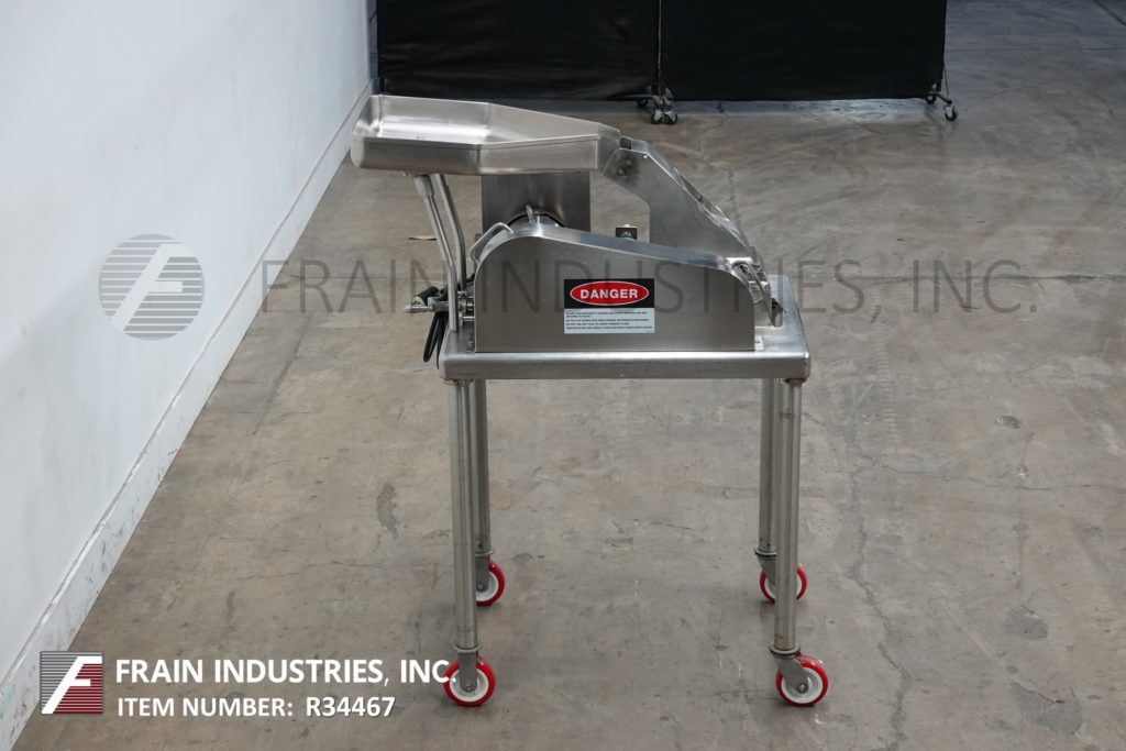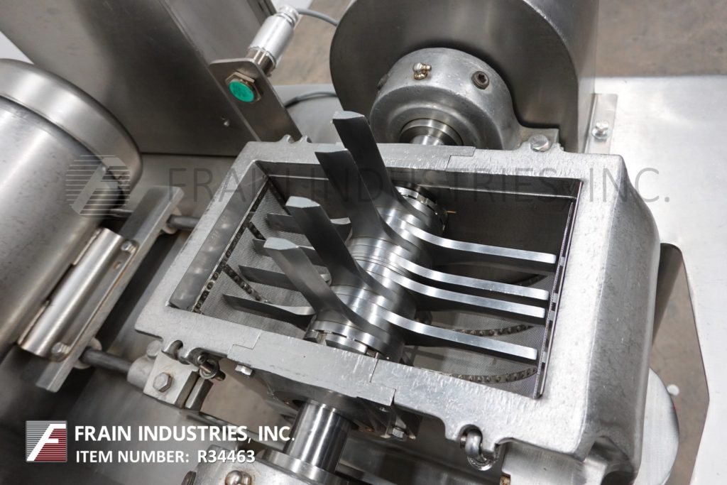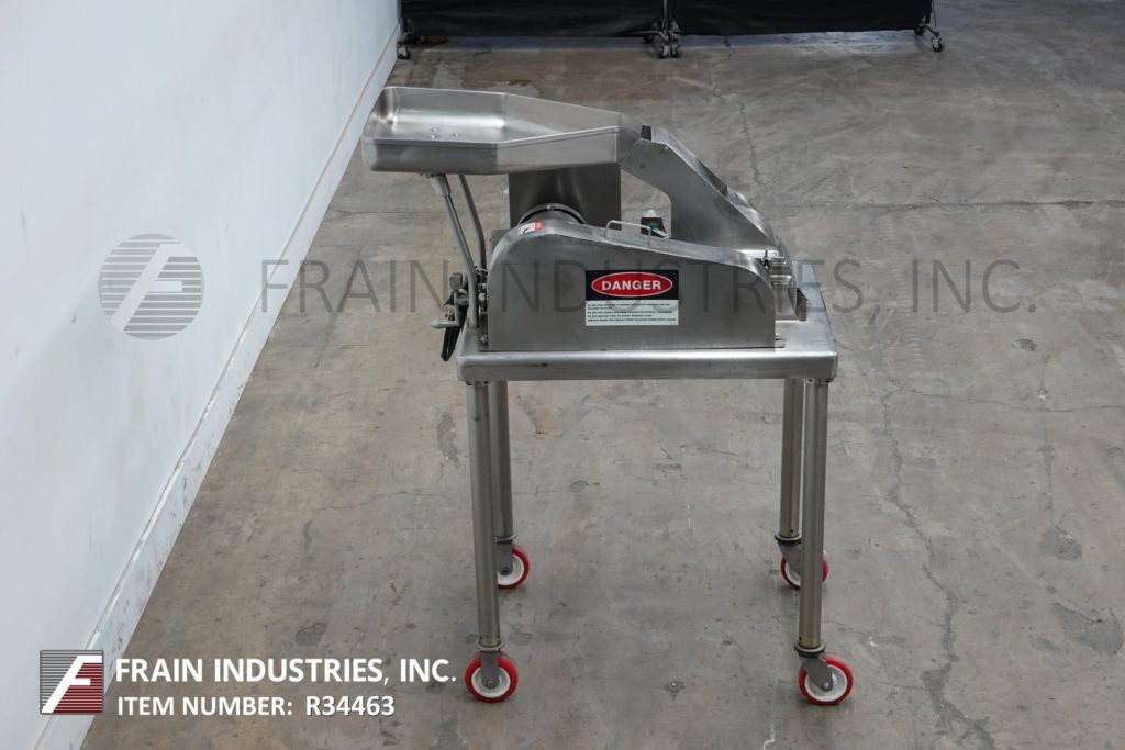 菲茨米尔,型号DAS06,不锈钢锤式磨机,每小时的生产速度取决于材料,应用和机器配置。配备26"长x 20"宽x 4"深进料盘,6"宽x 4"高进料喉部和(16)固定刀/冲击刀片,由7½Hp电机驱动。产品排放是15½“长x 5½”宽36“地板净空。具有启动/停止和e-stop控制。安装在不锈钢(4)腿架上。
