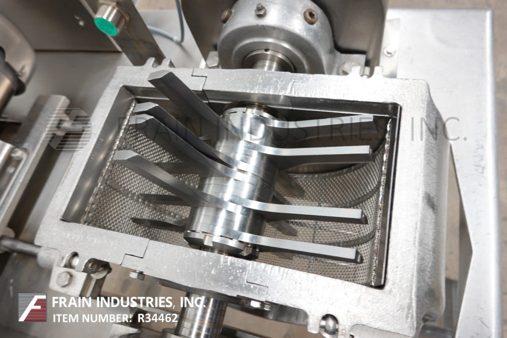 菲茨米尔,型号DAS06,不锈钢锤式磨机,每小时的生产速度取决于材料,应用和机器配置。配备26"长x 20"宽x 4"深进料盘,6"宽x 4"高进料喉部和(16)固定刀/冲击刀片由5马力电机驱动。产品排放是15½“长x 5½”宽36“地板净空。具有启动/停止和e-stop控制。安装在不锈钢(4)腿架上。