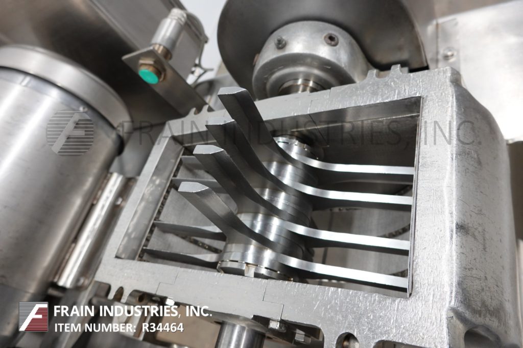 菲茨米尔,型号D6A,紧凑,壁式设计,316不锈钢结构,每小时的生产速度取决于材料和应用。配备12"长x 12"宽x 8"深不锈钢产品进料斗3"外径不锈钢变速计量进料螺杆与(16)固定不锈钢刀/冲击刀片和16"直径产品出料口33"地间隙封闭工艺室。VFS-D6A的壁内和壁上配置被设计成将驱动电机包含在一个单独的房间或技术区域。这就只剩下少数容易拆卸的产品接触零件在工艺领域。