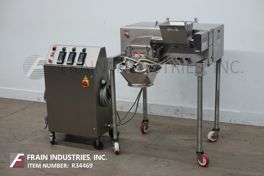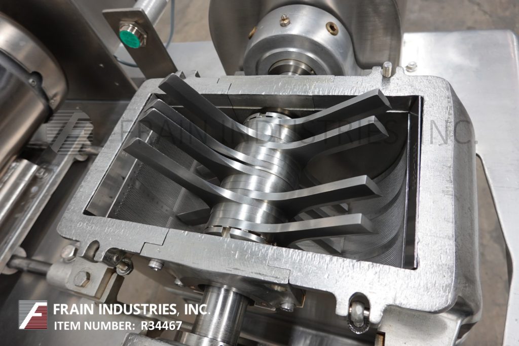 菲茨米尔,型号D6A,紧凑,壁式设计,316不锈钢结构,每小时的生产速度取决于材料和应用。配备12"长x 12"宽x 24"深不锈钢产品进料料斗2½"外径不锈钢变速计量进料螺杆与(16)固定不锈钢刀/冲击刀片和15½"长x 5½"宽产品出料口38"地间隙封闭工艺室。VFS-D6A的壁内和壁上配置被设计成将驱动电机包含在一个单独的房间或技术区域。这就只剩下少数容易拆卸的产品接触零件在工艺领域。