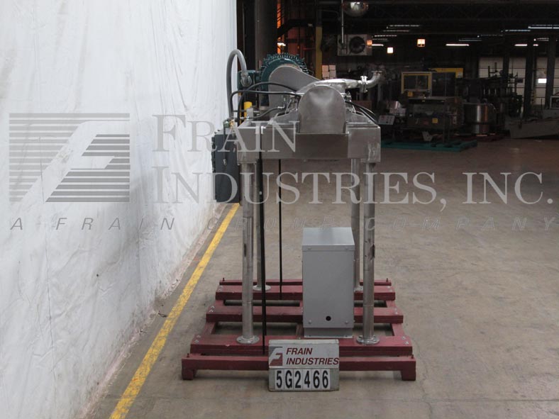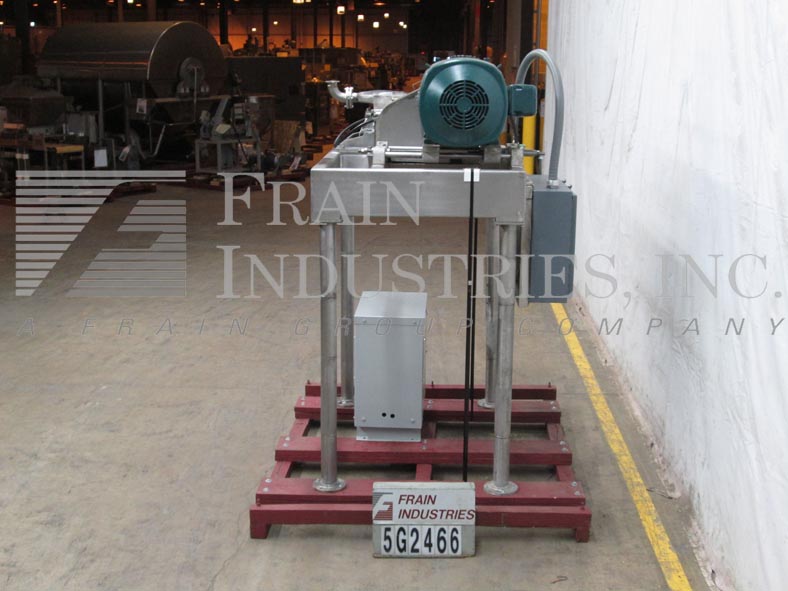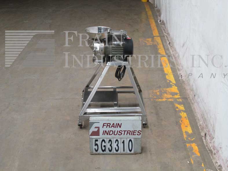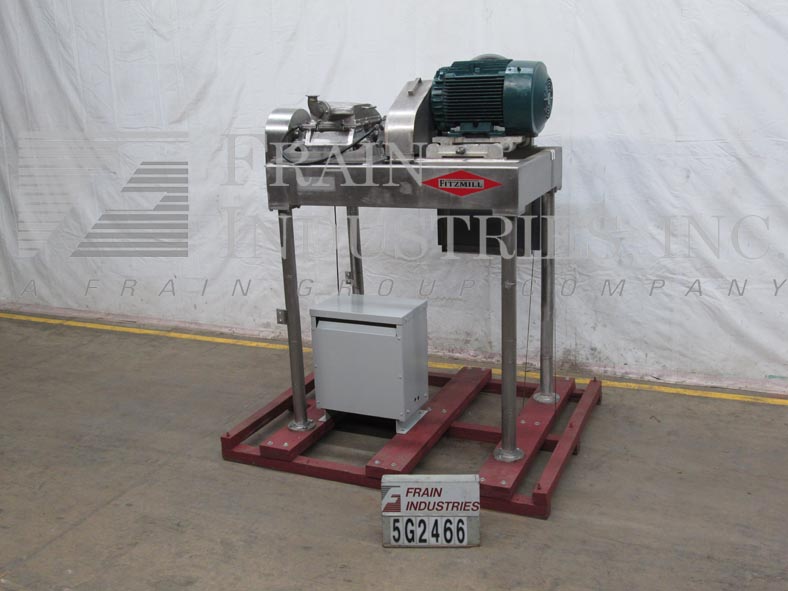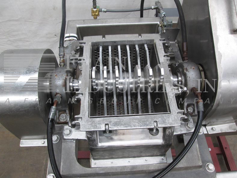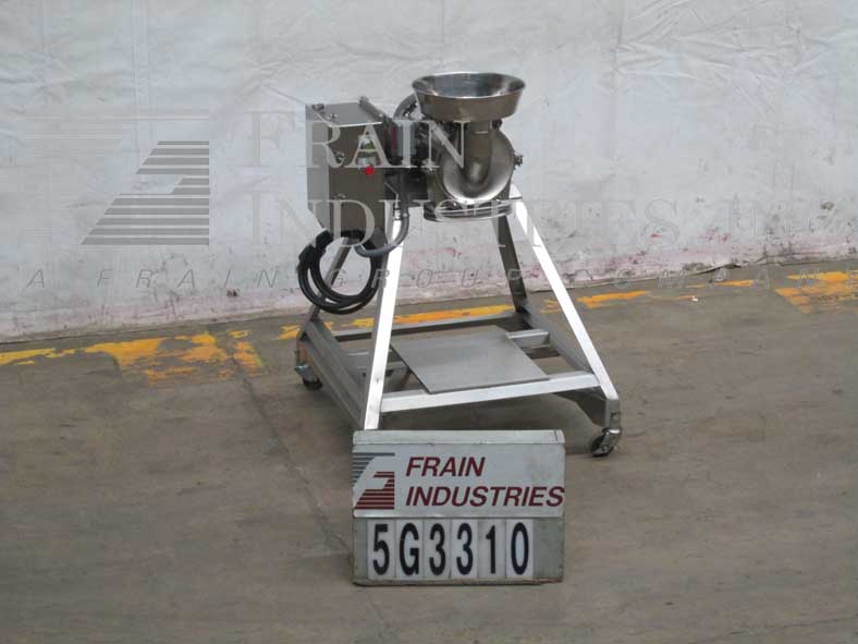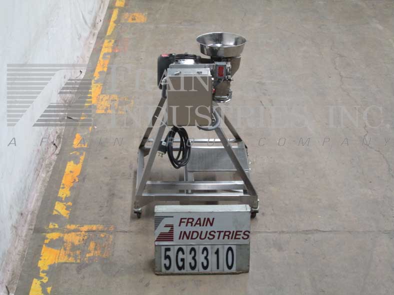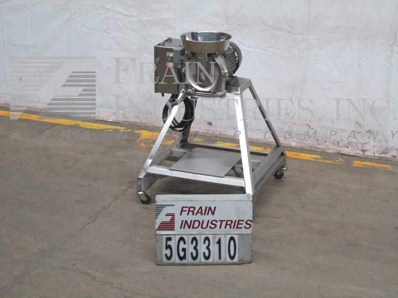 菲茨米尔,FAS012型,连续式磨机。配备(24)#625固定锯齿叶片安装在可逆转子,15“长× 12”宽不锈钢产品室,12“长× 7”W底部放电58“离地间隙。水平进料口,带有3-1/2"法兰(2" id)连接和限位开关。每小时的量取决于材料,应用和机器配置。60马力电机驱动。安装在不锈钢框架上。