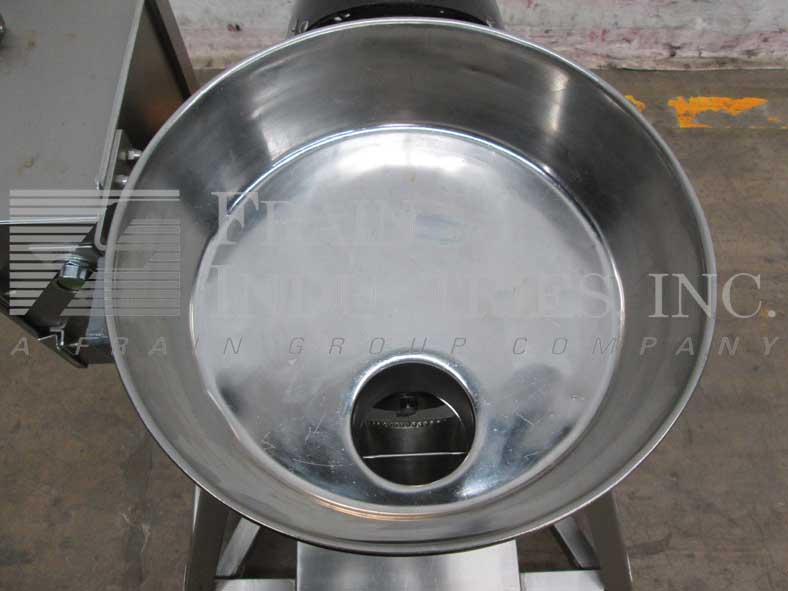 菲茨帕特里克,J型,不锈钢同质磨。生产速度取决于材料,应用,环境和机器配置。配备一个12“ID x 3”深不锈钢饲料3锅里“OD产品港口,6”喉咙,螺栓安全罩,12刀摆动影响叶片与2“宽x 16“长屏幕和一个8“长x 2”宽底产品与37“地板间隙放电。启动,停止和复位按钮与e-stop。