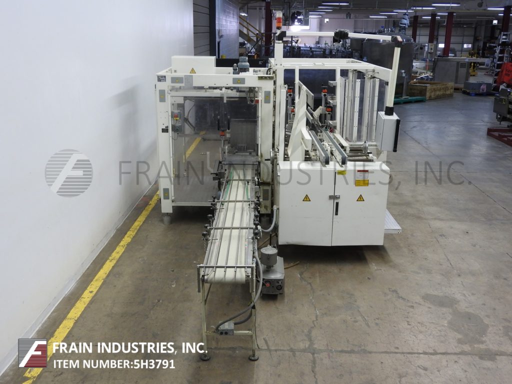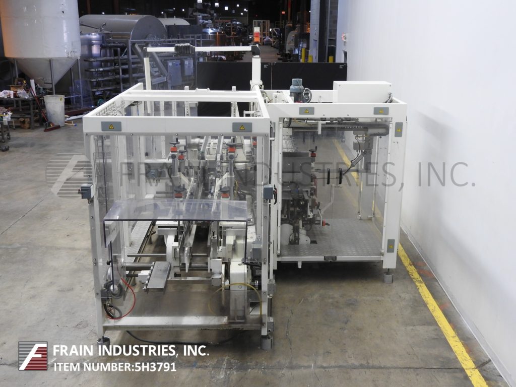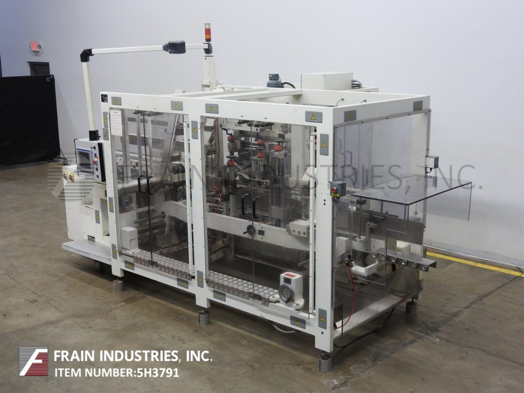 Focke Model 486,自动,小型占地面积,RSC,案例架构,封隔器,胶带封口机,每分钟5到15件案例 - 取决于材料和应用。案例尺寸范围为:7.1“至29.8”的长度x 4“至24.3”宽度x 4“至17.2”深度。配备64“L X 40”H,供电的空白盒杂志,往复式的PIC-N-Place,80“长x 11-3 / 4”宽,进给输送机,上堆叠器和单臂RAM壳装载机。襟翼闭合截面有2英寸宽顶/底壳锥形,双30“长x 3”宽的产品放电输送机,每个都有32“放电高度。A / B控制器,具有e-stop和互锁安全保护。