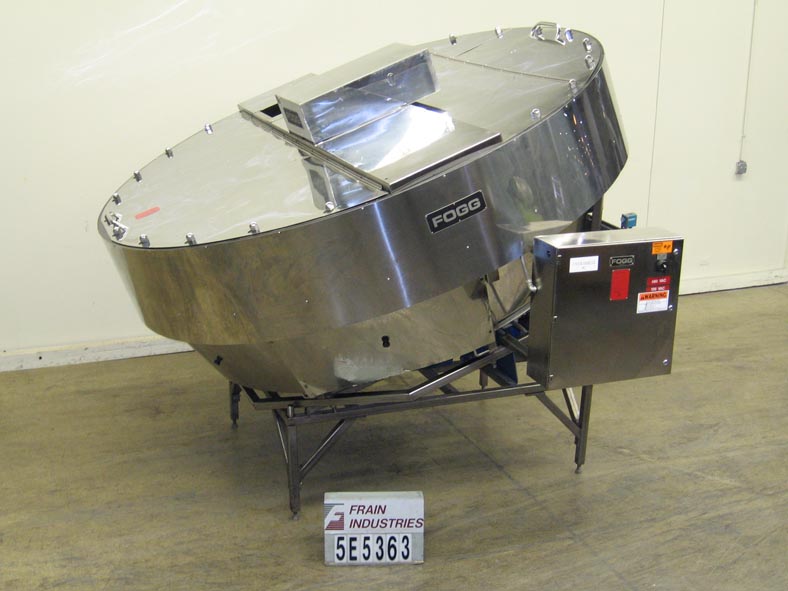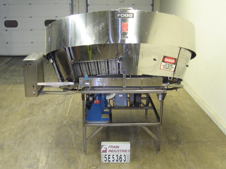 Fogg RBUS,自动,旋转塑料瓶理瓶器,可180至450 bpm -取决于材料和应用。具有120" OD排序碗,20" 长×14 1/2" W产物进料端口和当前设定与(无产物斜槽),2 HP真空系统额定300 SCFM以3500rpm,控制面板与开始,停止,微动,输送机,光盘,和鼓和可变速度控制装置,并且被安装在可调节的螺丝腿。