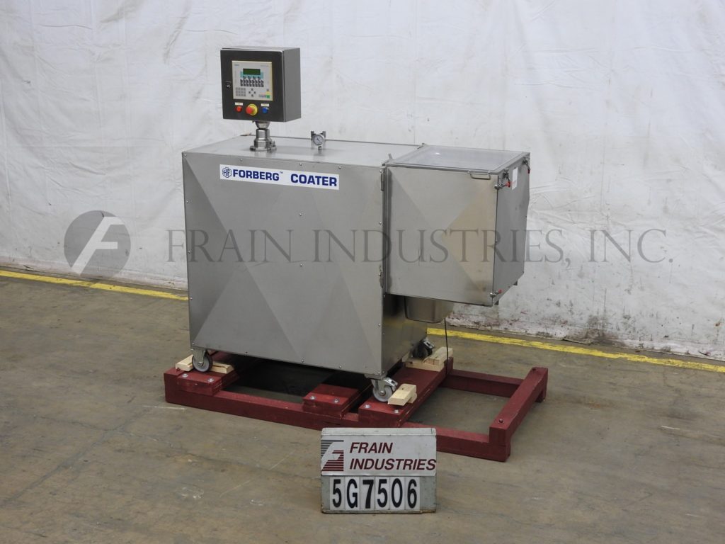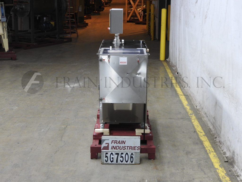 福贝格型号F-6-RVC,实验室大小,不锈钢,双桨搅拌器和真空涂层系统额定从2.5到6升每批与每小时的产品磅数-取决于材料和应用。混合和涂层槽尺寸:14.5"长度;7.5“宽;深度9英寸,设有压下翻转、上压下盖。(2)套反向旋转2"宽x 2-1/4"高x 1/8"厚角度桨1/4"外径辐条设置在1½"外径x 9"长轴和倾斜放电到13" x 11"放电端口24"地间隙和滑在捕集盘。控制面板有Simatic控制器和西门子触摸板控制,读出,e-stops和真空泵。安装在带脚轮的不锈钢封闭式底座上。循环:水产饲料膨化物、饲料球团、宠物食品杂粮、食品膨化物的自动喷涂、温和混合、真空包芯,也可用于医药科研产品开发、化工行业多孔散状物料的包覆。