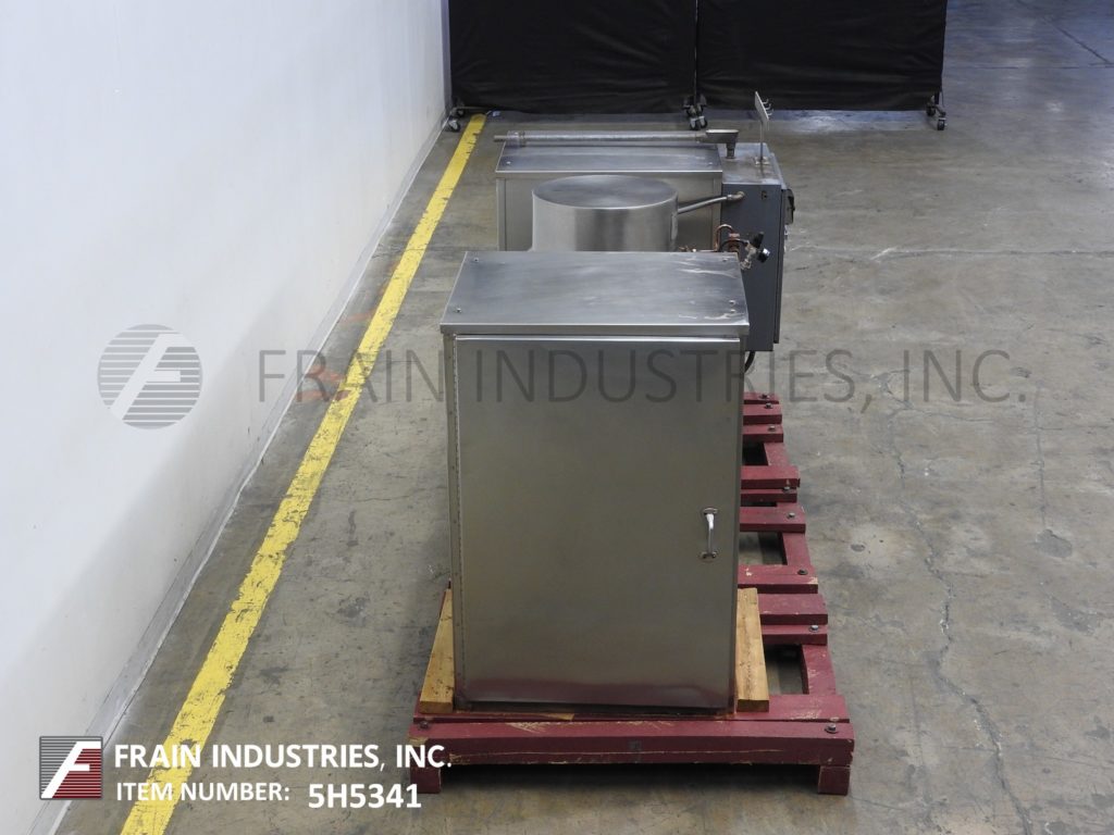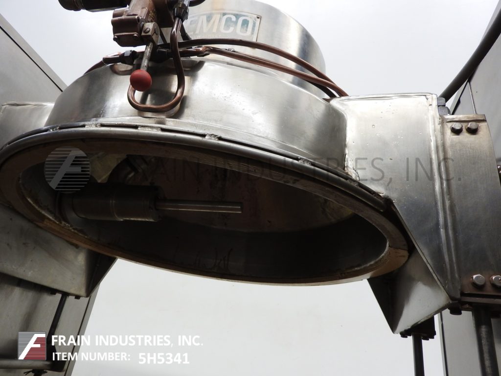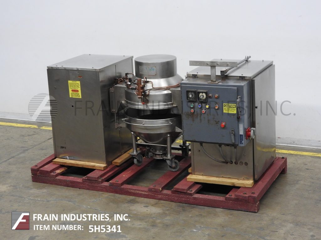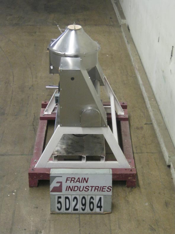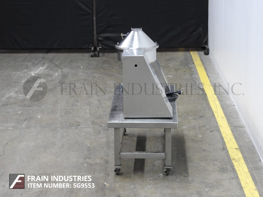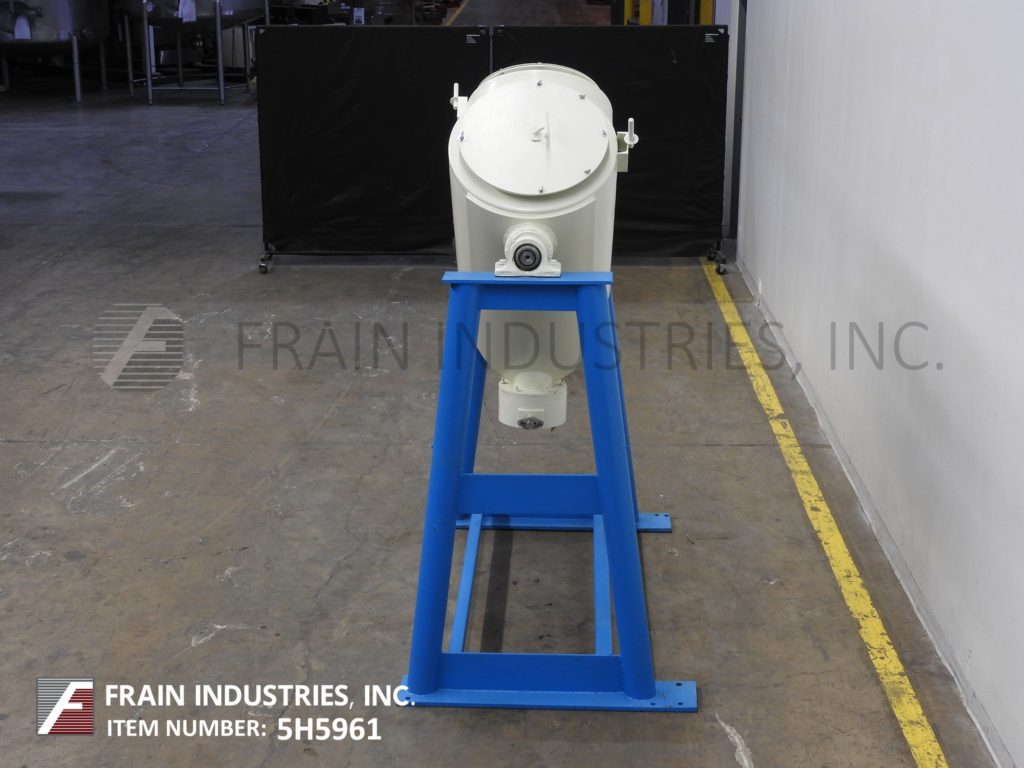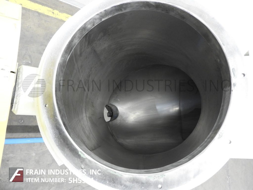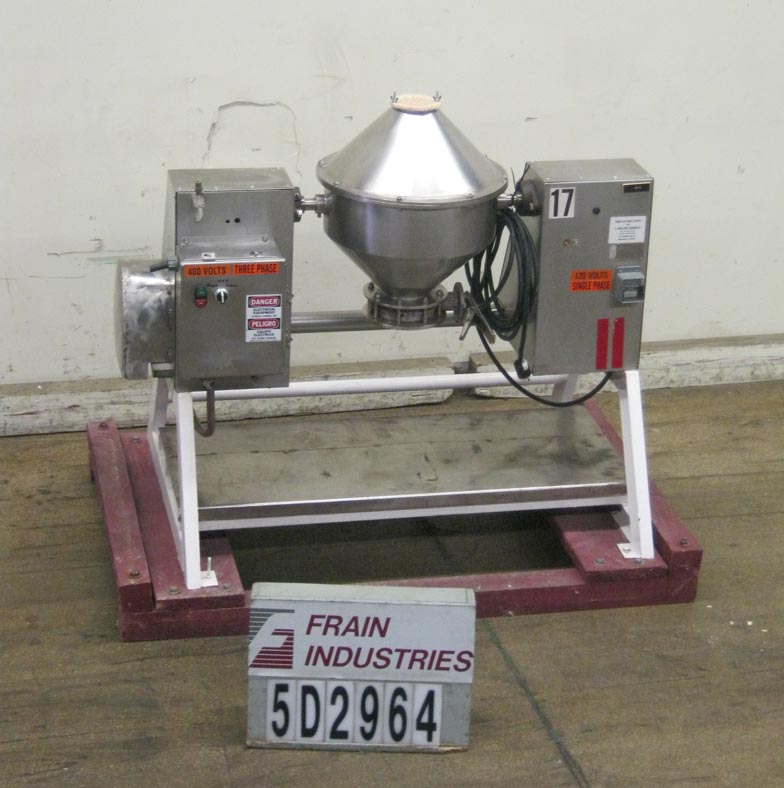 Gemco Model 3立方英尺工作能力,304不锈钢,Porta Hopper双锥形搅拌机,喷壶和每小时的产品磅 - 取决于材料和应用。锥形调光:直径为3-1 / 2“高度x 29-1 / 2”的40英寸。配备加压罐33-1 / 2“高X 18”OD X 36“落地间隙,进料30毫米,放电73mm放电(连接到27个”管道),43mm侧罐排出,安装在温和的钢基底上。料斗配备了Gemco的尘候蝴蝶的尘候型阀门。安装在基座框架上,带有脚轮和3“落地间隙。D / 3设计提供更高的颗粒移动性,以便更高效的混合和易于清洁。