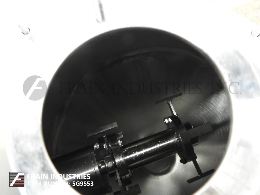 共172立方英尺(103立方英尺工作容量)304不锈钢双锥滚转混合机。混合室尺寸:长度121-1/2";直径90”;21-1/2”直墙;从地板到中心轴的距离134-3/4";容器半径60-3/4”。两端配置13-1/2"外径/ 9-1/2" ID法兰产品端口,变速30hp驱动和E-stop,摆动直径121-1/2",和74"放电高度。控制面板有一个a /B Micrologix控制器,30马力电机驱动与逆变器控制,并安装重型基础框架。