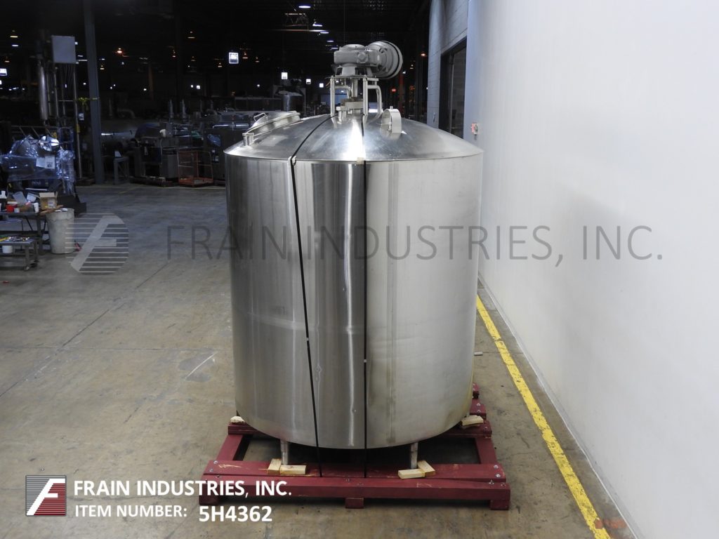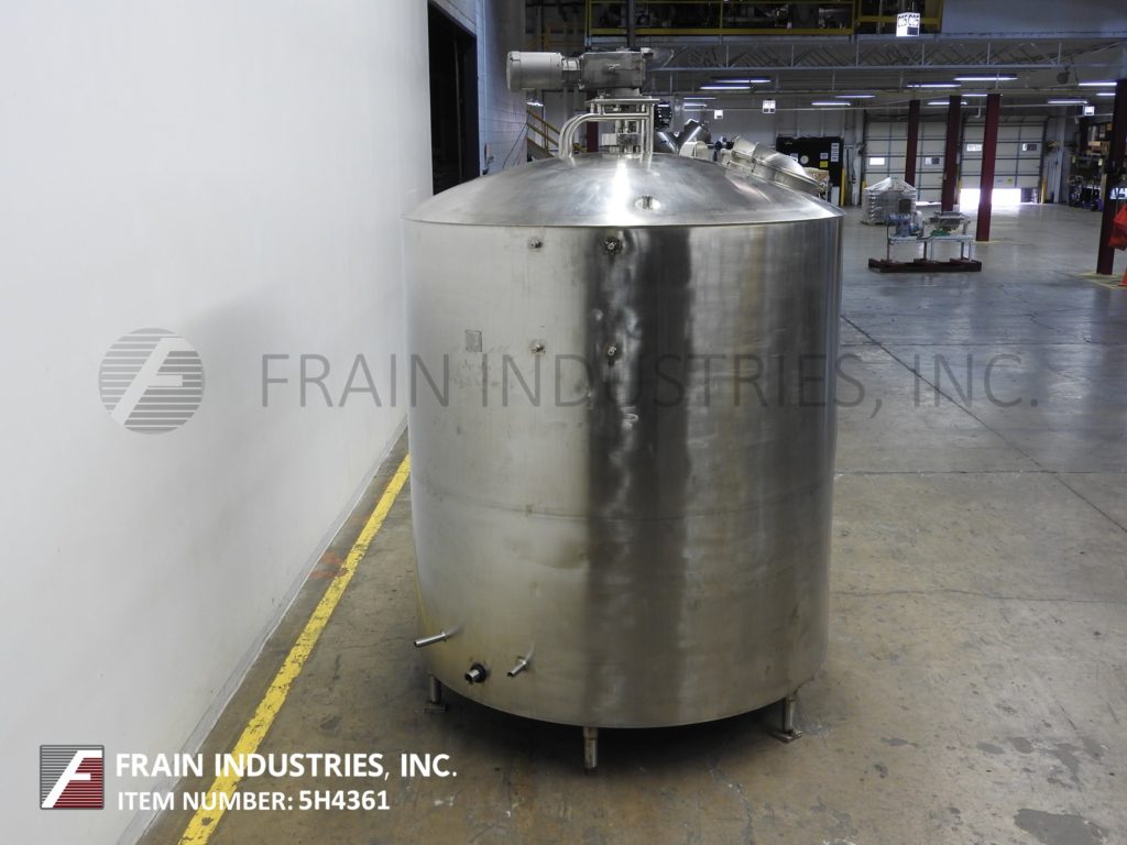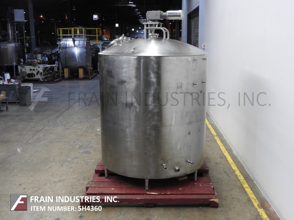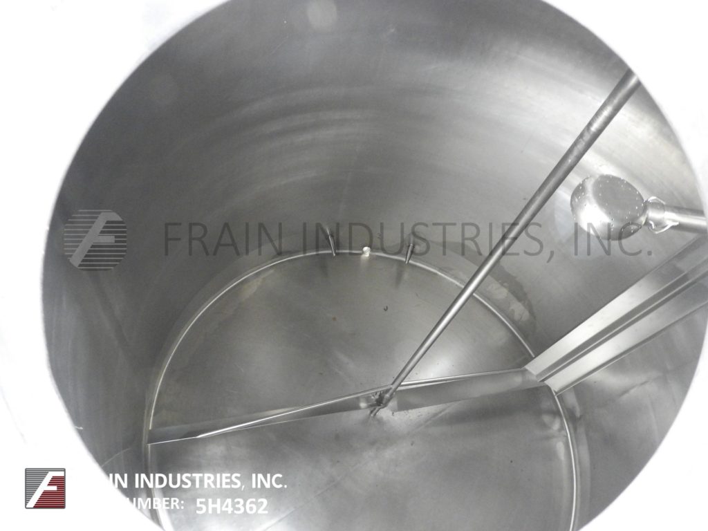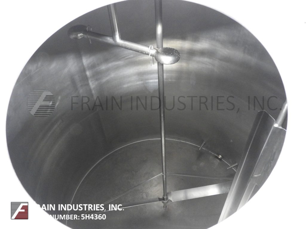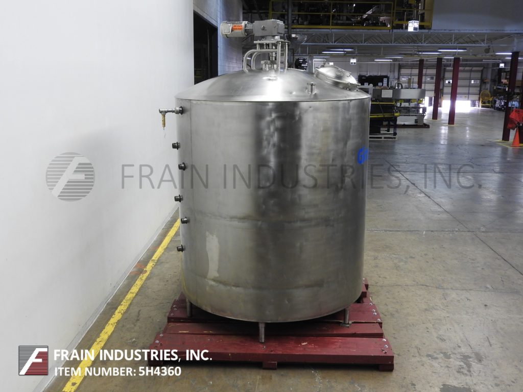 格顿,1500加仑容量,304不锈钢夹套和绝缘工艺罐。容器尺寸:74"直径x 78"深。配备一个18"直径顶部铰接人路,(2)CIP喷雾球由2"OD / 1½"ID三钳配件提供,(1)7"宽可调挡板,2hp顶部安装的清扫搅拌器,(2)温度计套管和2½"OD / 2"ID三钳放电与13"地间隙。