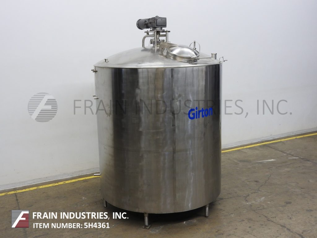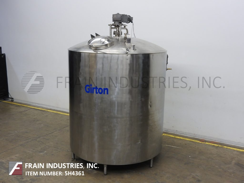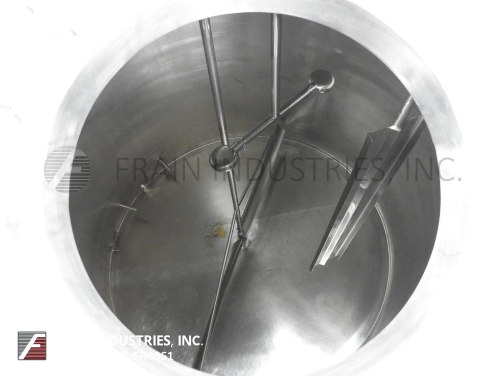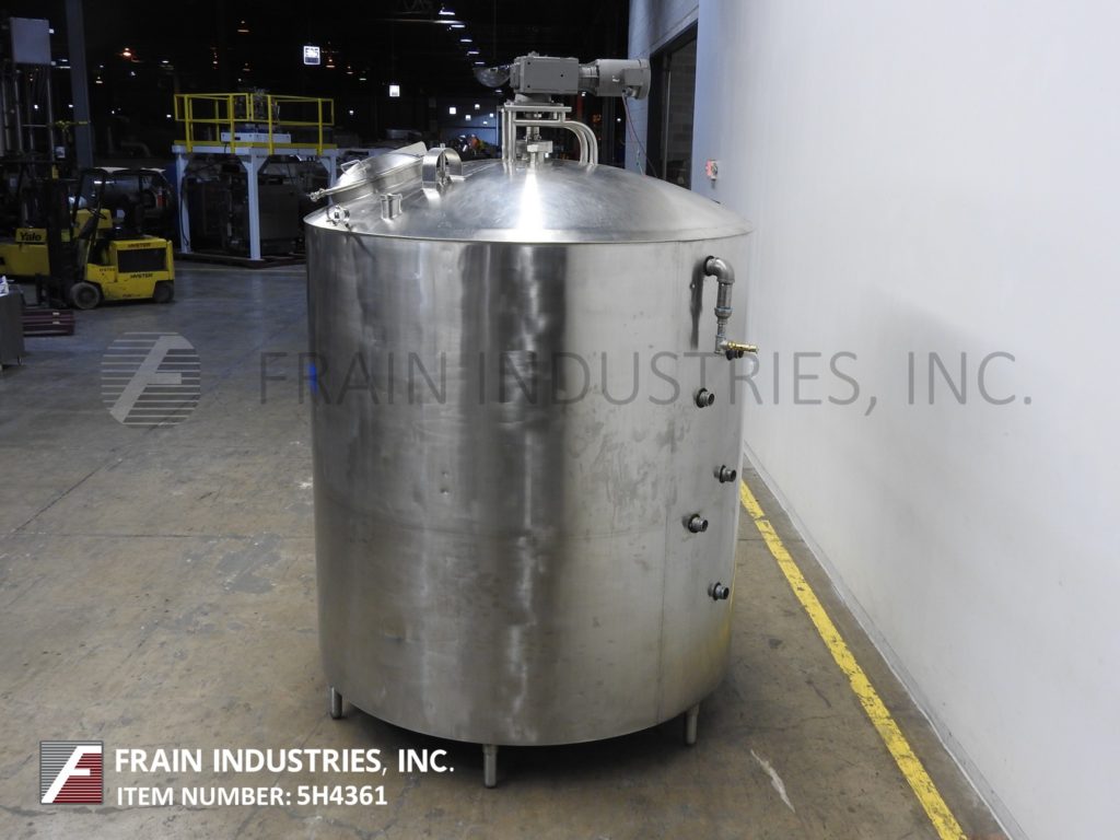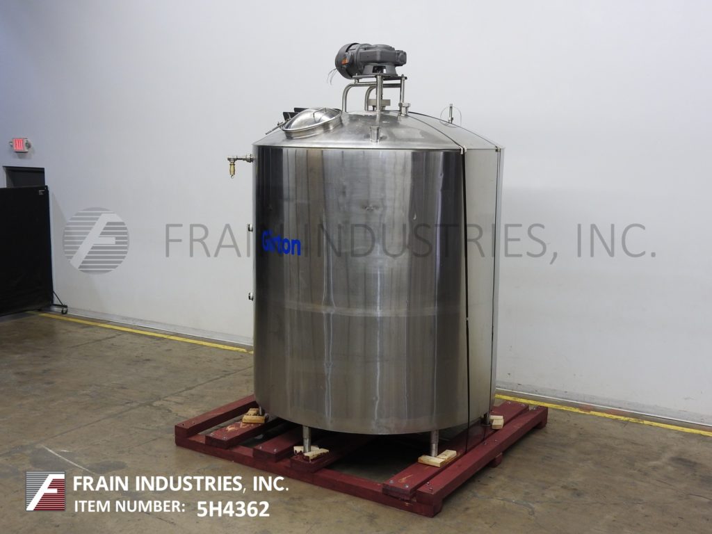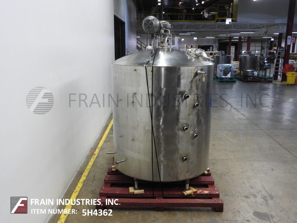 格顿,1500加仑容量,304不锈钢夹套和绝缘工艺罐。容器尺寸:74"直径x 78"深。配备一个18"直径顶部铰接人路,(2)CIP喷雾球由2"OD / 1½"ID三钳配件提供,(1)7"宽可调挡板,2hp顶部安装的清扫搅拌器,(2)温度计套管和2½"OD / 2"ID三钳放电与13"地间隙。