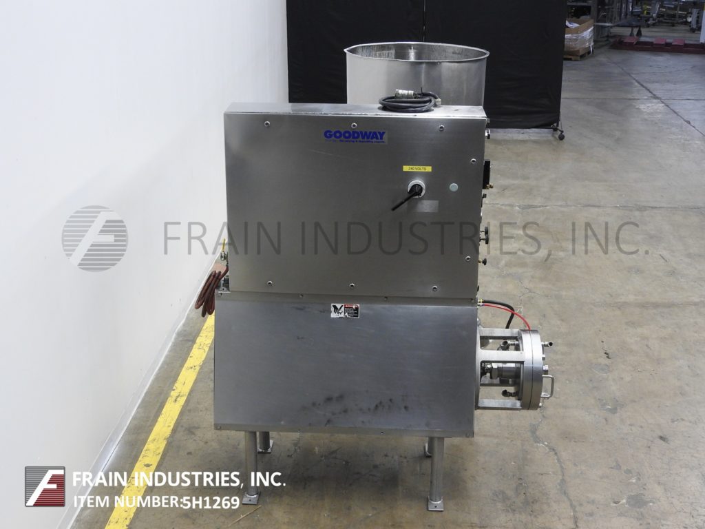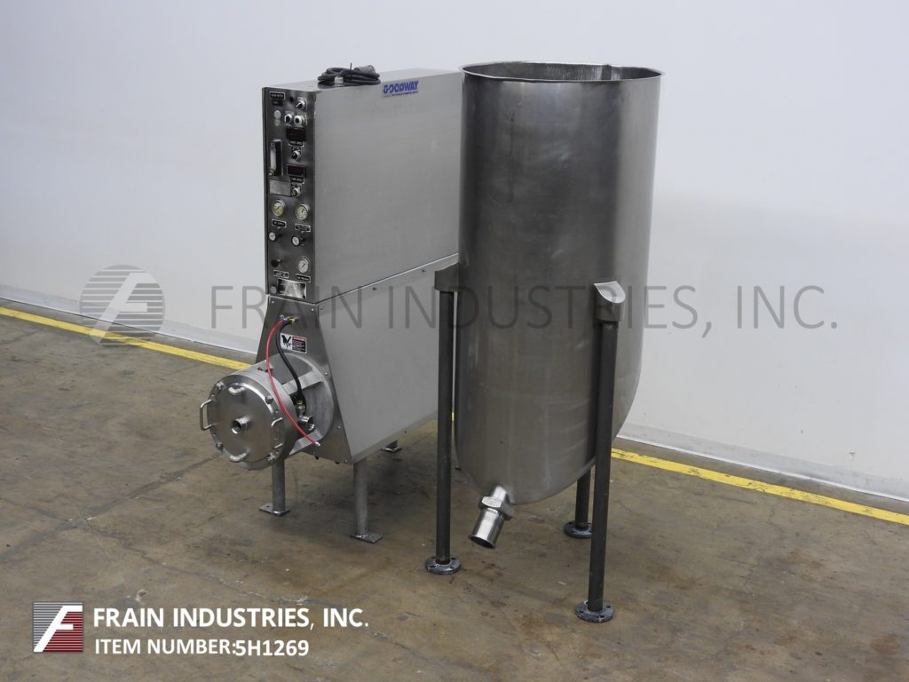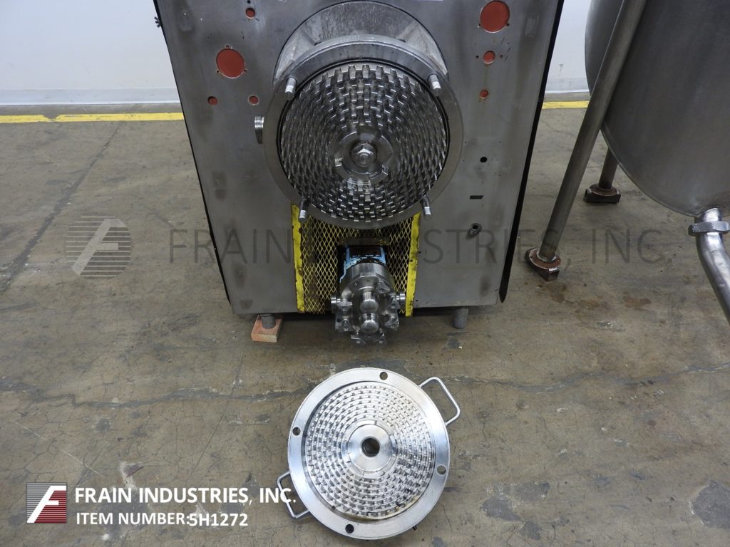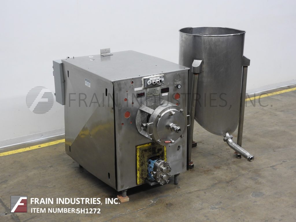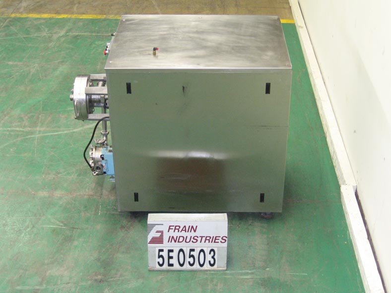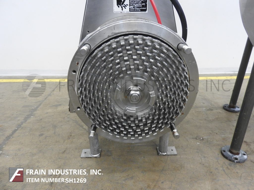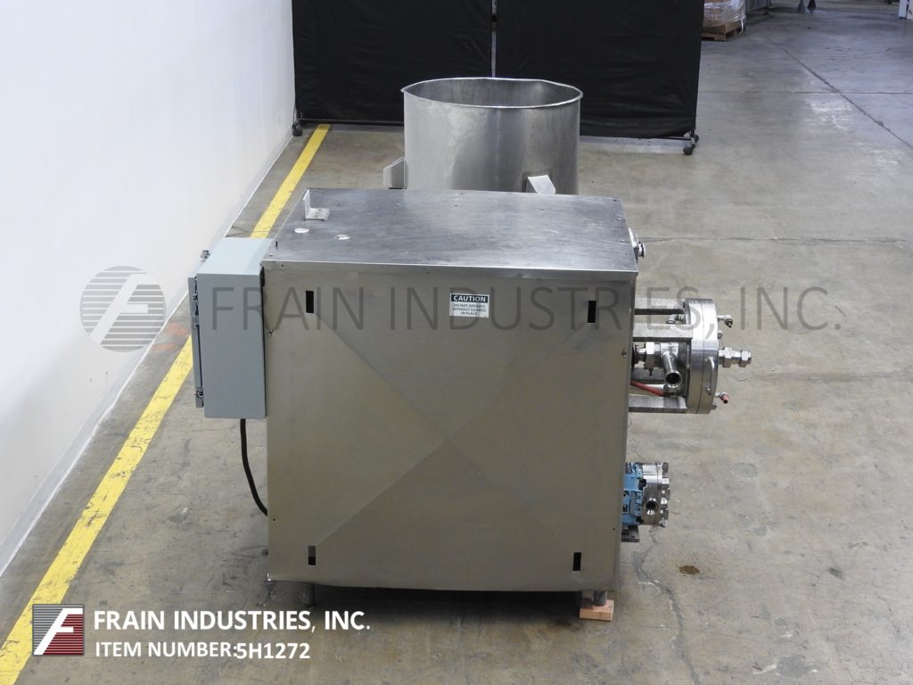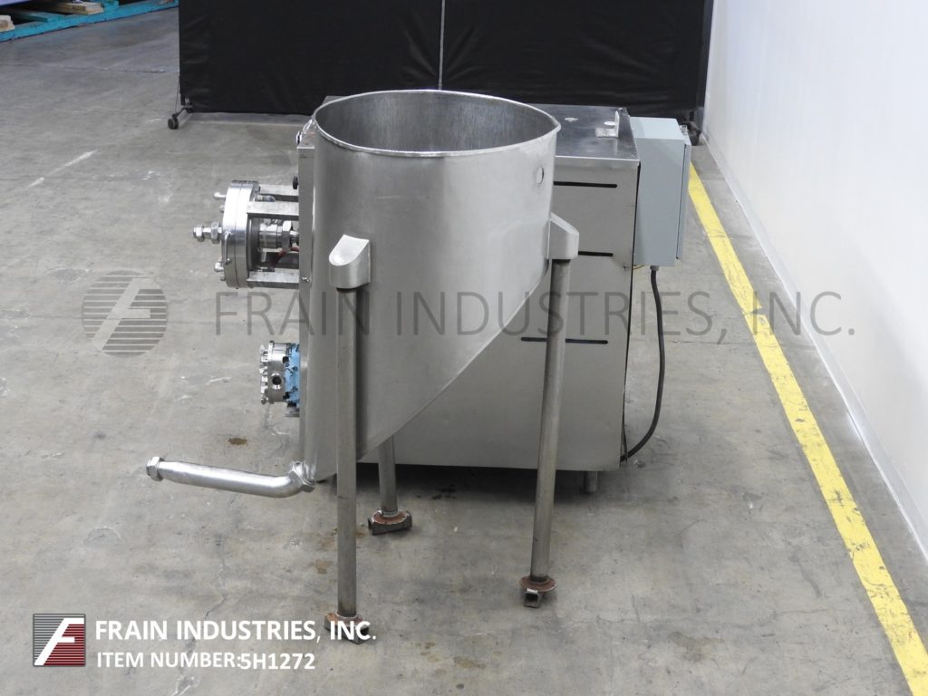 Goodway CM35型,紧凑,不锈钢,连续,高剪切,转子,定子,曝气器,搅拌机额定每小时250至4800磅产品-取决于材料和应用。配备双墙混合室cooliant循环16“OD / 13”ID金字塔形状的搅拌头raidial流盘组成的高剪切作用前后转子和定子2 - 1/2“OD螺纹中心成品出口和卫生密封传动轴额定150 psi标准CM35 450 psi。底部产品泵具有2-1/2"外径螺纹在/出口端口。控制面板有转子/泵速度控制和启动/停止按钮。安装在不锈钢通用底座框架上。连续搅拌机可使蛋糕糊、奶油馅、棉花糖、糖霜、鲜奶油、黄油和其他许多东西通气。
