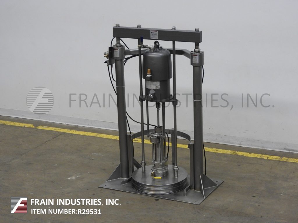 Graco,Model 234014,牛头犬气泵,具有启动活塞位移,10:1比例设置额定电量高达8加仑/分钟 - 取决于材料和应用。最大流体工作压力:1000 psi(68.9 bar)。最大空气输入压力:100psi(6.9 bar),可以处理粘度,高达1,000,000件CPS。配有不锈钢合同零件,21“RAM板,具有单个气动活塞RAM,2½”OD / 2“ID Tri-Clamp流体放电。安装在不锈钢基础框架上。