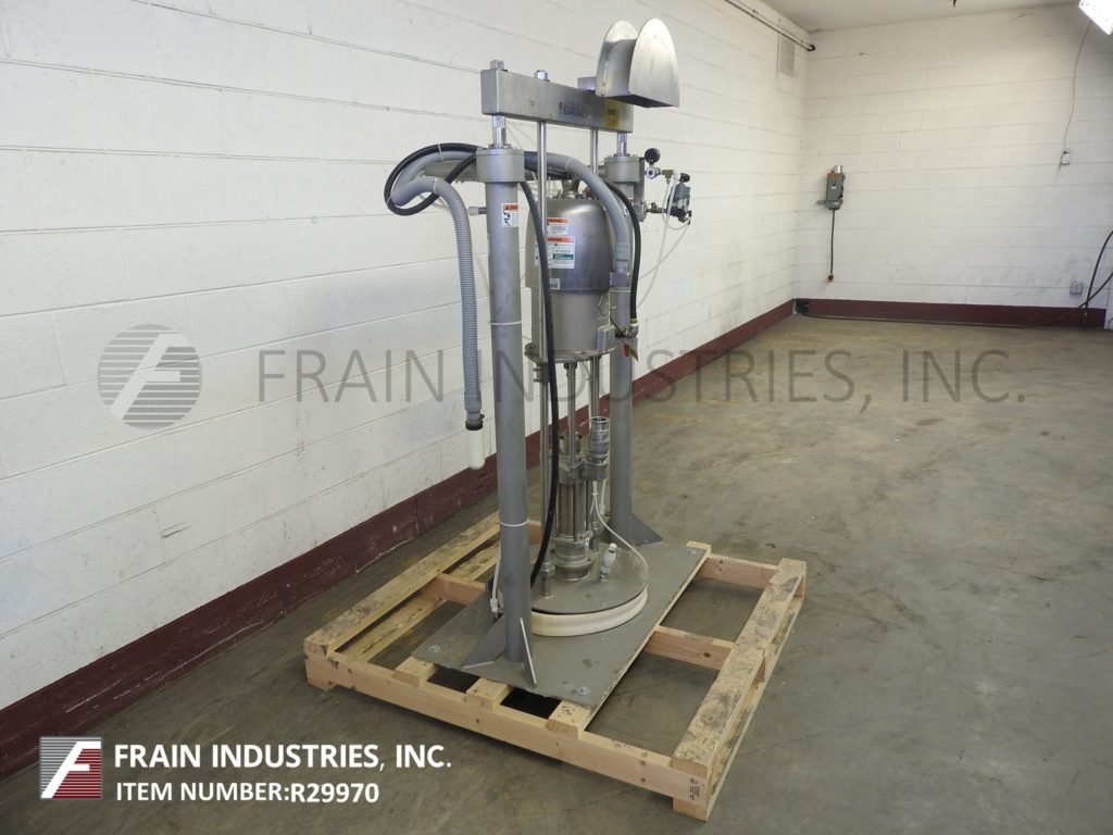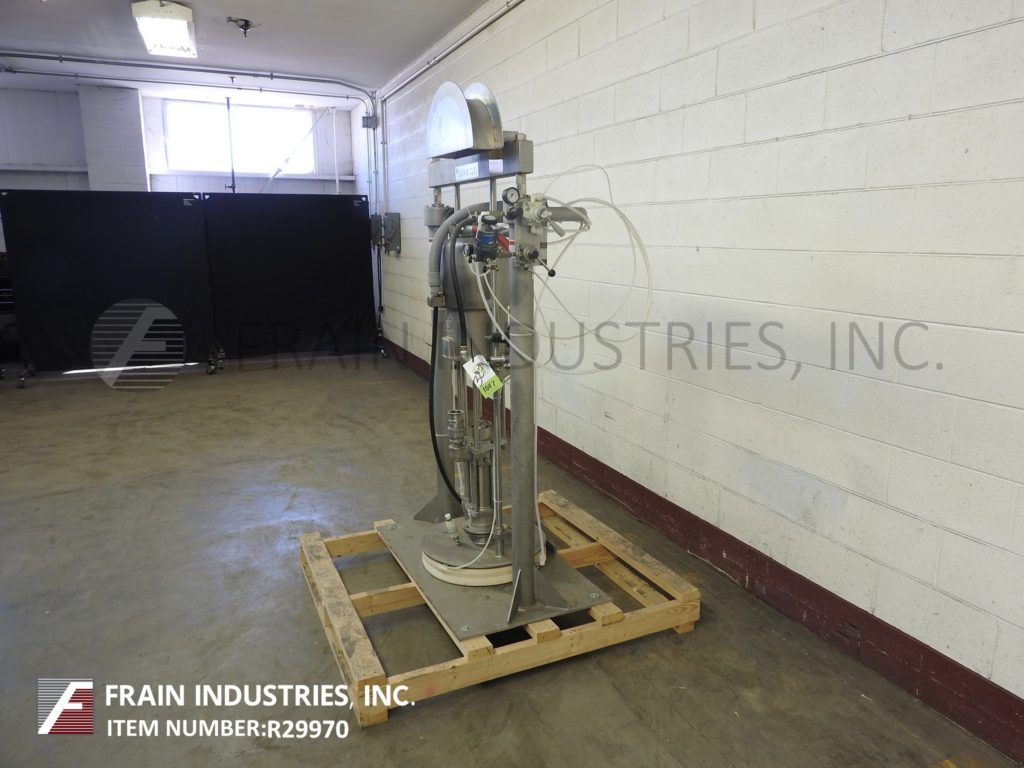 Graco Model 946500 Power-Flo,10:1比例,不锈钢,鼓泵额定电压速度高达8加仑/分钟 - 取决于材料和应用。粘度:高达1000,000。最大压力等级:高达1000 psi。(70)栏,工作温度高达160°F。配备22“OD滚筒从动板,(1)1”(1)1-1 / 4“(2)1-3 / 4”OD螺纹NPT空气入口,带仪表的空气控制阀和2-1 / 2“OD螺纹放电。安装在34”长x 24“宽不锈钢平台框架上。