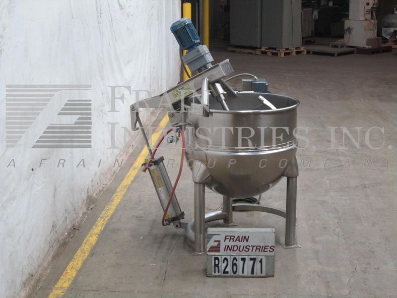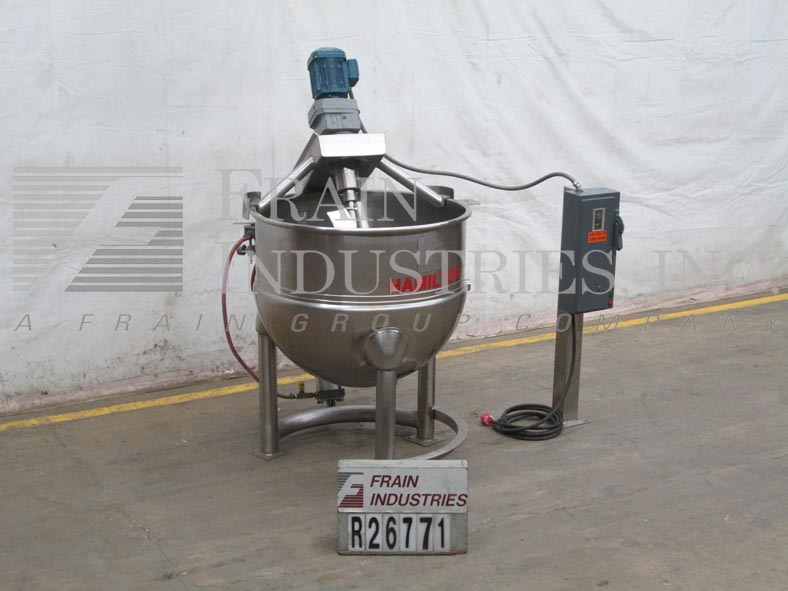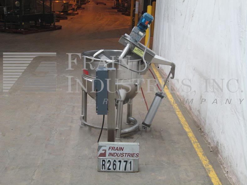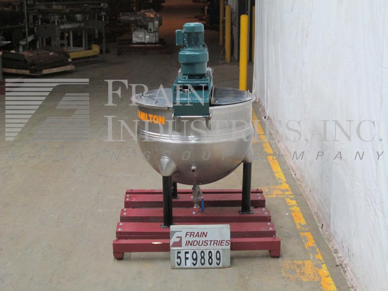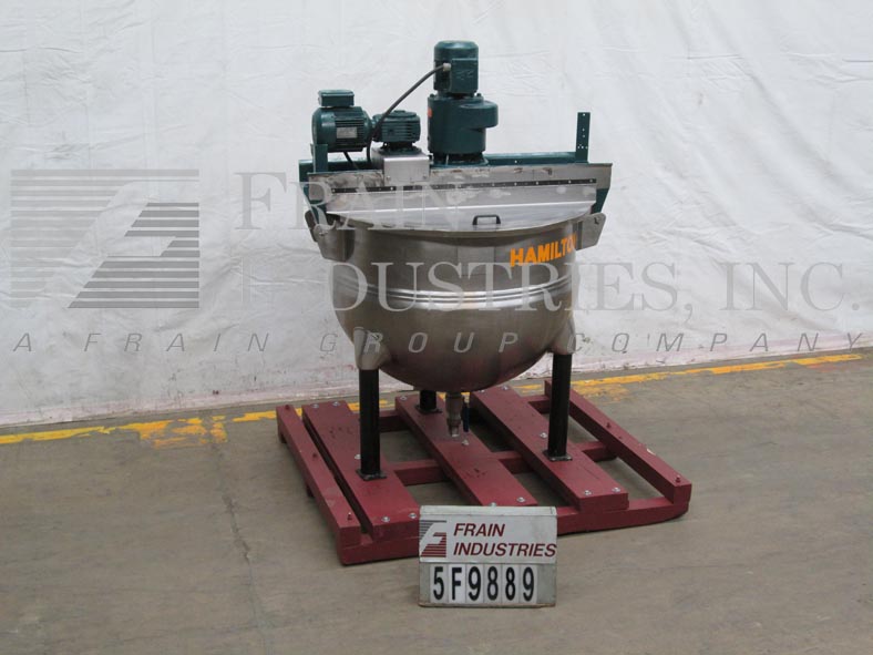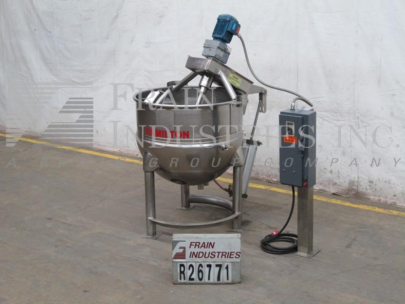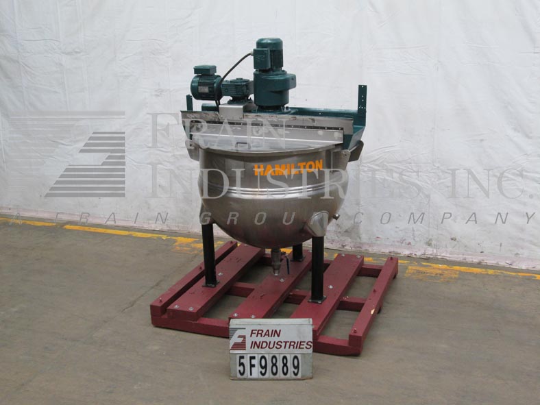 汉密尔顿,100加仑,316不锈钢,½夹套,倾斜的混合水壶。船舶尺寸:38“直径x 31”深,带13英寸的直壁搅拌碗。配备倾斜的刮削表面搅拌器,由2个HP电机提供动力,倾斜搅拌。½夹克额定100 psi @ 328°F。有(2)1½“NPT入口和(2)1½”NPT出口夹克端口。3½“OD / 3”ID I-Line风格底部放电,17“占地间隙。安装在(3)不锈钢腿上。