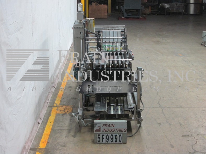 Hartness Model 900, automatic, drop caser packer rated from 5 to 30 cases per minute with number of containers – depending on materials and application Case size range: 6" to 24" in Length x 6" to 16" in Width x 1-1/2" to 19"in height. Equipped with 6′ long x 18-1/2" wide product in feed conveyor, that feeds into 13′ long x 24" wide product laner currently set with (4) lanes 4" wide each, with air blader container handling. 11′ long x 6-1/2" wide empty case conveyor with bottom-up case lift, 30" long x 16" wide grid area, currently set for 3 x 4 pattern. Control panel has Hartness controller with operator start, stop controller, central lubrication system and pneumatic valve bank. Mounted on heavy duty base frame.
