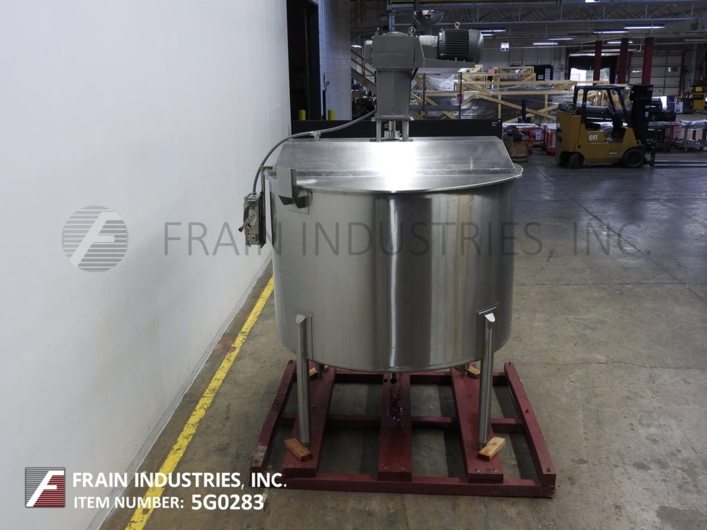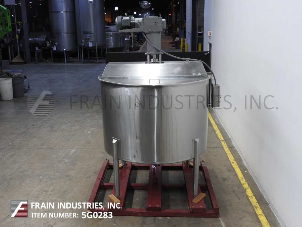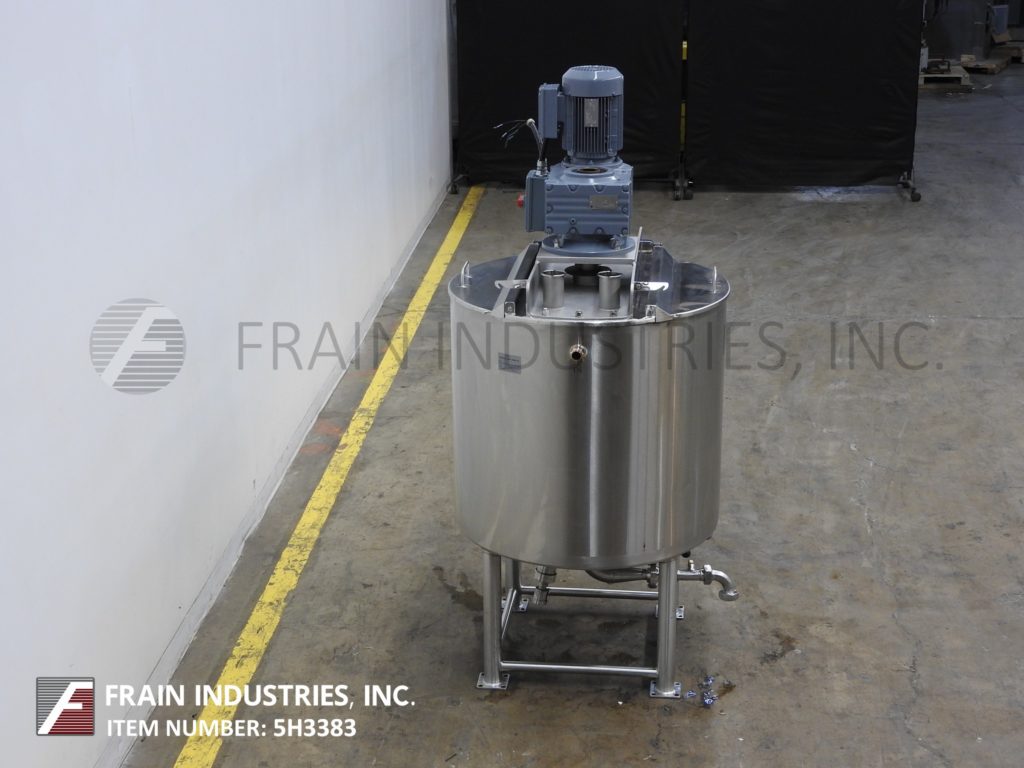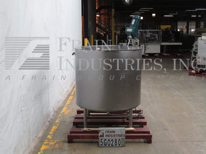 高地模型1300加仑,316不锈钢,单壁搅拌罐。船舶尺寸:72“ID x 74”直墙。圆顶顶部,拥有前18英寸的ID Manway,配有翻转螺栓盖板,顶侧安装的闪电样式道具搅拌(1)2“(1)3”OD卫生顶级端口和(1)3“OD通风口。锥形底部有2-1 / 2“OD卫生地区底部放电,蝶阀和7”底板清洁安装在(4)不锈钢臀部插座腿上。