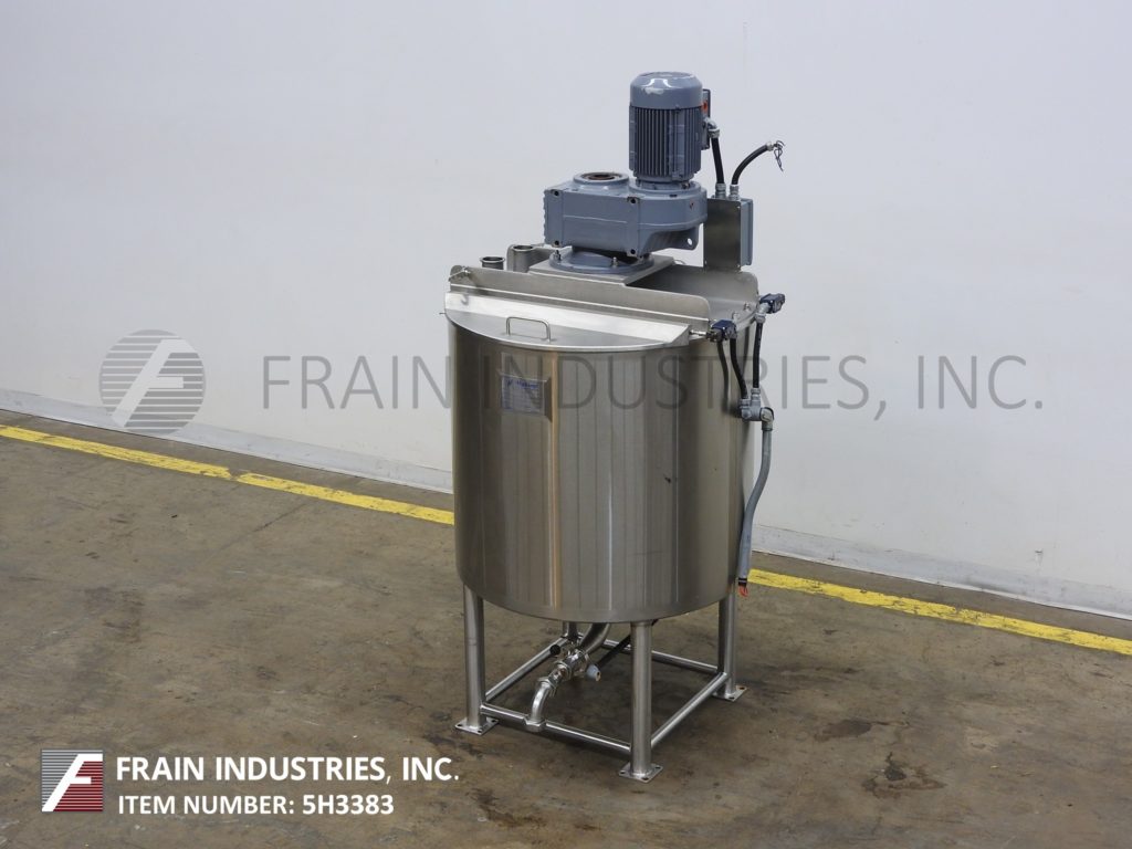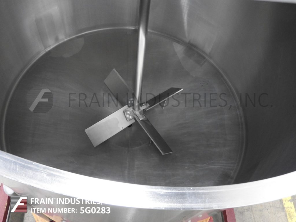 高地,500加仑,304不锈钢,低压夹套和绝缘罐。船舶尺寸:55英寸直径x 56“深,带有48英寸的直墙。配备侧面安装的1.74 HP照明支柱搅拌机,菜底和2”OD /1½“ID Tri-Clover中心底部放电,关闭阀门和6“的地间隙。安装在四条不锈钢腿上。