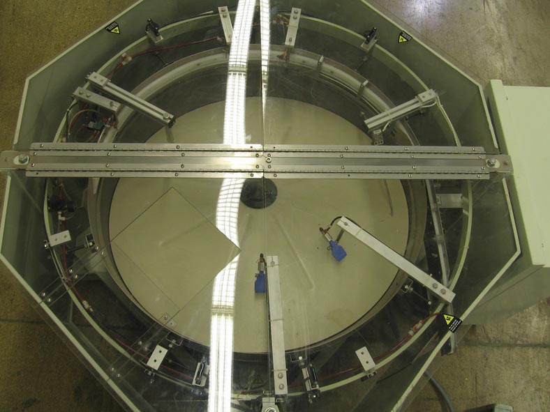 离心给料机的速度可达2000个零件每分钟取决于零件尺寸,形状和给料特性。单元有4 '直径碗25立方英尺容量。配有可控硅控制的变速驱动器,调平腿,不锈钢工具,lexan和不锈钢防护罩。系统尺寸:上环直径为72",下壳直径为50"。其他应用范围从火花塞,保险丝,Dip插座,轴承海绵,糖果,Caps,和灯泡。OAD: 6 ' 6"直径x 4'H。