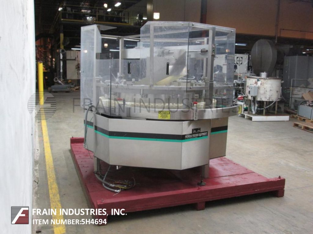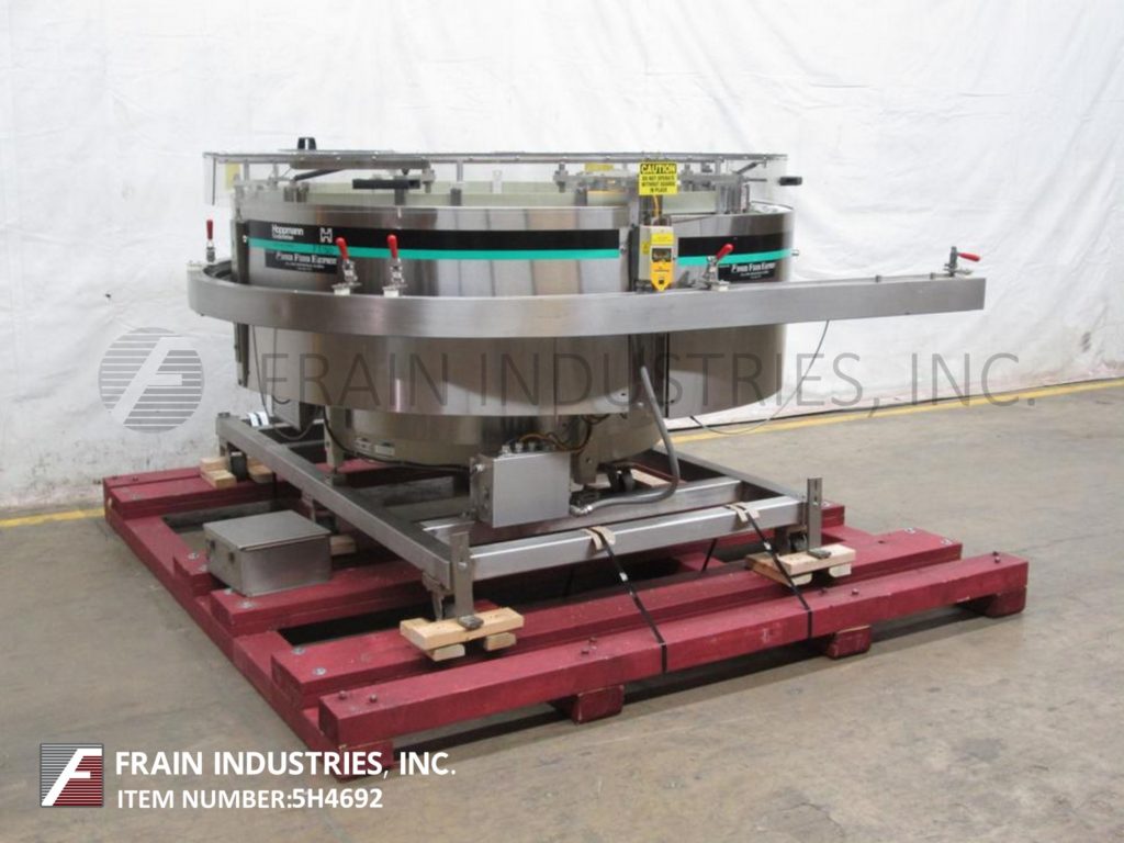 霍普曼,型号FS-50SS,自动50"直径,离心碗扇形给料机额定从100到2000片每分钟-取决于材料,应用和机器配置。配备62"直径外圈,50"直径内底产品环,12"宽30"不锈钢产品饲料溜槽,全保护包和冲压空气输送机由1HP鼓风机供电。液位传感器和气动拒绝前,在高度40"放电。用调平垫安装在普通底座上。