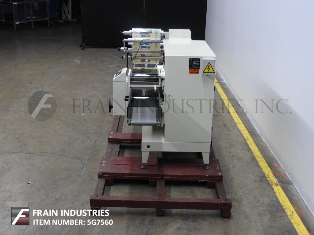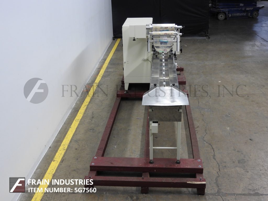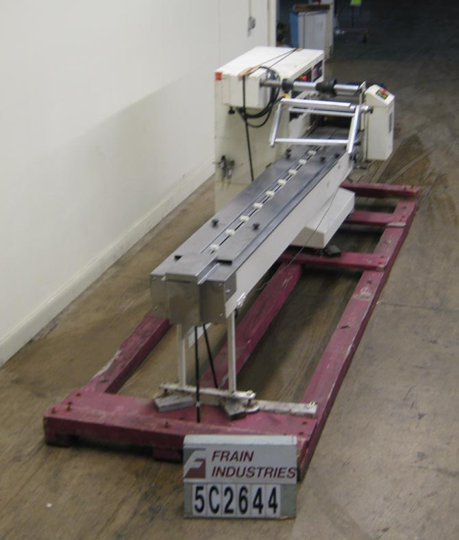 ILAPAK,Model Lynx,自动,1-Up,水平包装。每分钟20至125份产品 - 取决于材料和应用。包装尺寸范围:3"至15"长度;¾“宽度为8”;高达3½“高度。配备96英寸的饲料输送机,可调节导轨和¾”高凸耳10“中心,胶片登记,成型站,3套翅片车轮(2拉动1SEALING),10英寸宽十字密封,33“长排放输送机。控制变速和密封温度。安装在lexan安全守卫的平整垫上。薄膜规格:宽度高达20英寸;直径最多13英寸;3“核心。