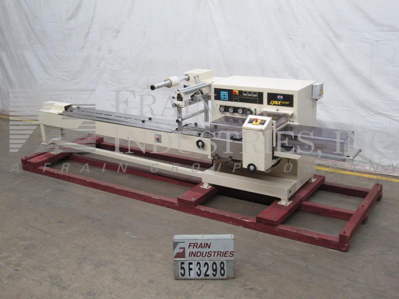 Ilapak Lynx,自动水平包装。尺寸范围:长达15英寸;宽度高达8英寸;高达3-1 / 2的高度。配备8'销钉进给,底部鳍密封,一个UP10“宽十字密封钳和32”放电。速度取决于材料,应用和机器配置。