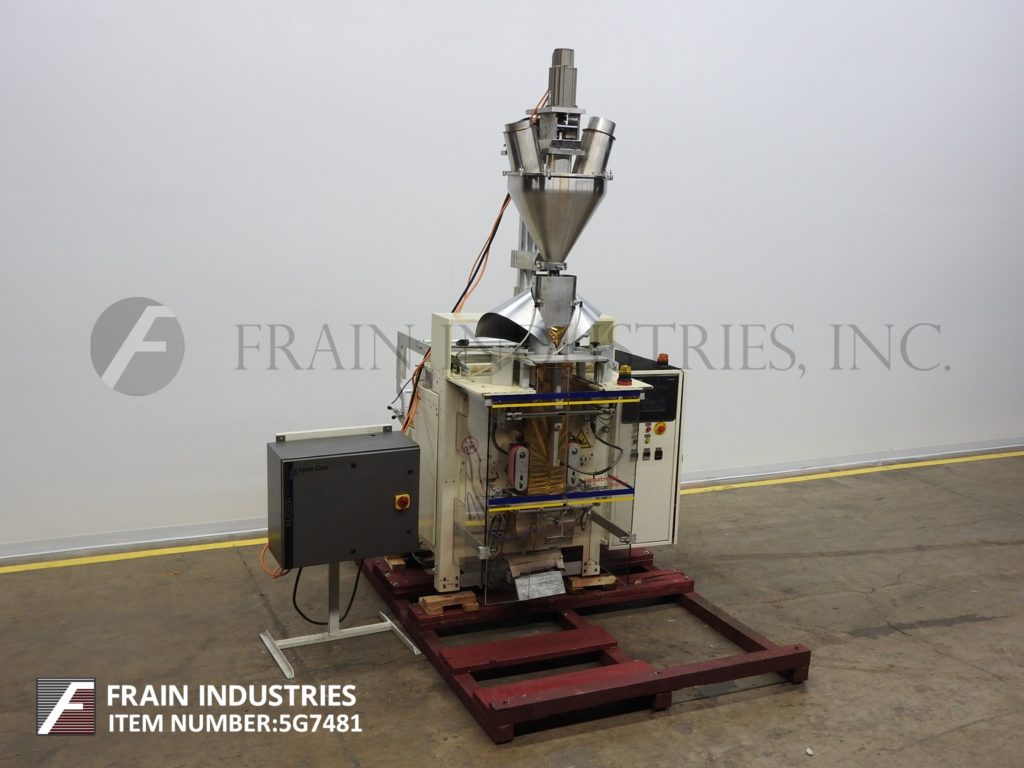 ILAPAK,型号VT2000 / 400S,自动,垂直形式,填充,密封机。每分钟20 - 80袋-取决于材料和应用。袋尺寸范围:2¾“到14¾”宽度;2¼"至27½"长度。配备Speedee伺服螺旋填充物,16英寸水平(1¾“宽)热刀密封钳,23”立式圈密封,侧面座,侧带辅助和安全守卫。最大卷宽30“,辊直径20”在3“核心。控制面板具有AB PLC控制器,带AB面板视图1000触摸板控制,前部,后部和垂直密封杆的数字温度控制,带启动,停止和e-STOP按钮。安装在基础框架与水平腿。