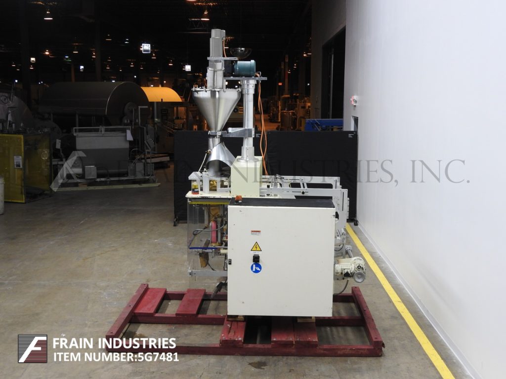 垂直,形式,填充和密封率为80袋/分钟 - 取决于材料和应用。袋尺寸范围为2-3 / 4“至14-3 / 4”,宽度;长度为2-1/4"至15-1/2"。配备电影登记,侧带胶片辅助,16“立式圈密封,15”锯齿状的热刀十字封,伺服驱动器,PLC,带面板视图和lexan安全保护。薄膜规格:宽度高达30-1 / 2“直径为3”核心。另外特点:全部填充螺旋填充带22“直径不锈钢产品料斗,螺栓向下防尘罩和7“OD产品端口。Hapman不锈钢螺旋输送机,30”x 30“x 34”深度产品料斗,带盖,2-3 / 4“直径x 128”长螺丝,顶部安装1/2 HP电机驱动器和6“OD产品排放口。