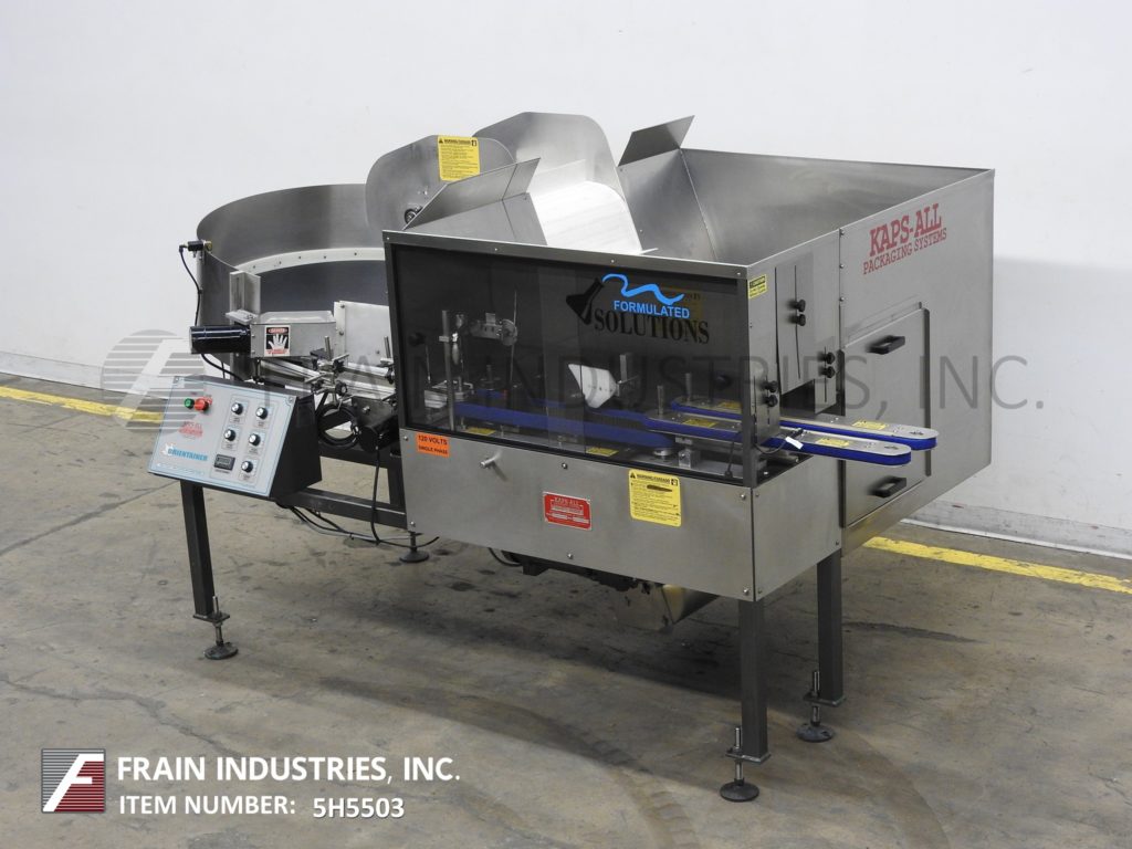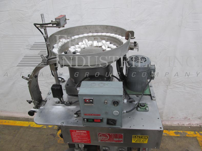 KAP所有型号A,自动,内联,3站,6个主轴夹,每分钟20到200个容器 - 取决于材料和应用。帽尺寸范围:13mm至120mm,容器尺寸范围从低罐子和小瓶到2-1 / 2加仑,能够处理所有类型的帽,包括透明液和塑料,金属或玻璃容器,(全部与适当的变更部件)。配备72“长X 3-1 / 2”宽德拉德尔集装箱输送机36“直径的Vibrtory Feed碗,双28”长x 1“宽双容器夹具带和3站,6个主轴盖紧闭门,开始,停止和e-stop按钮控件。安装在彩绘的基础框架上。