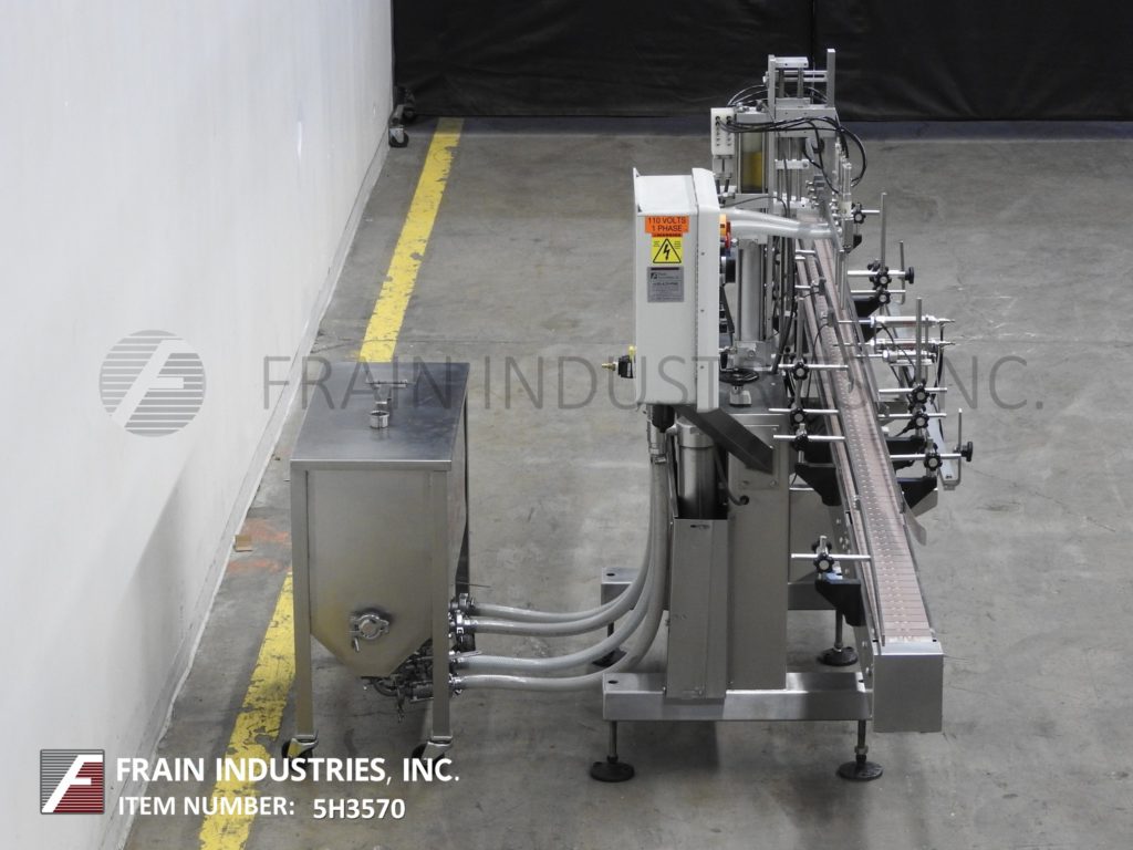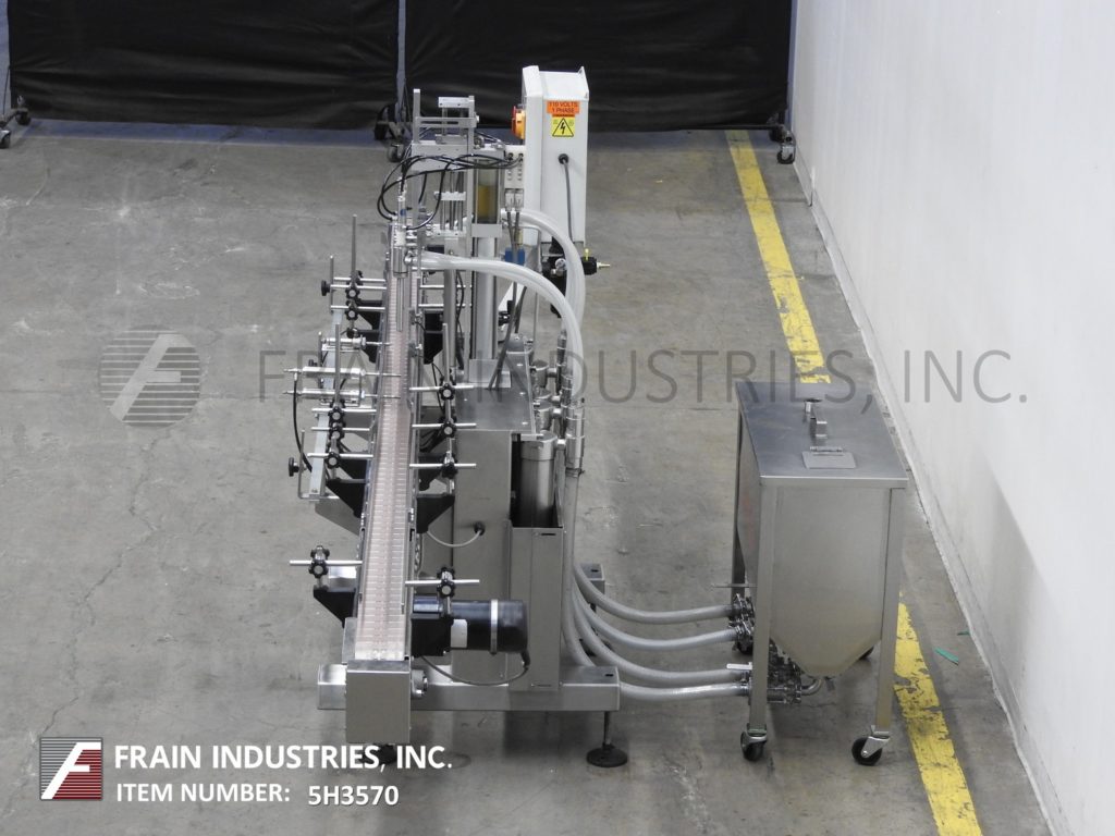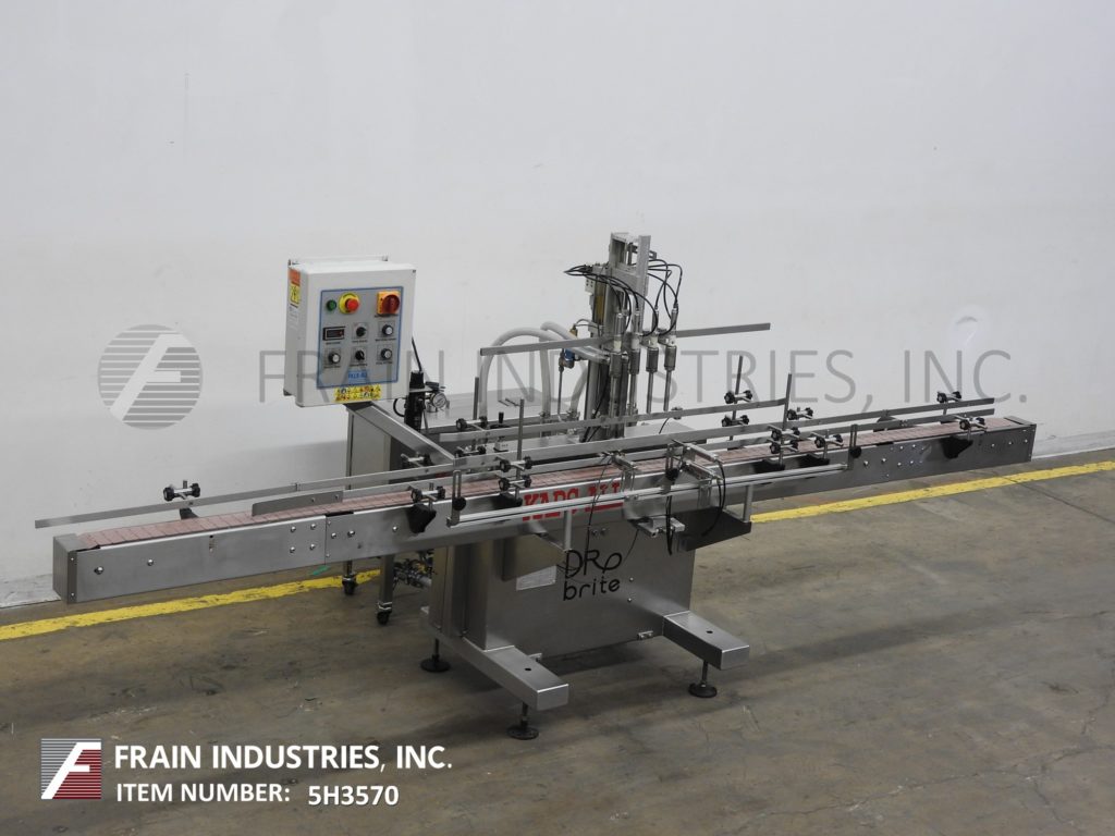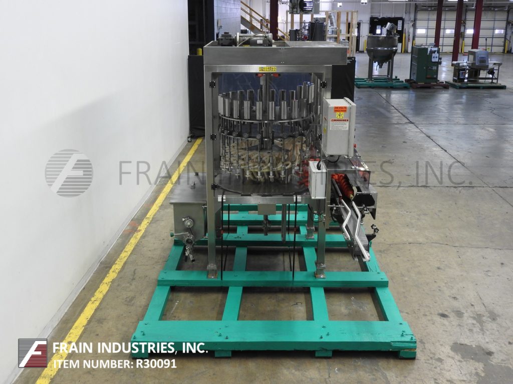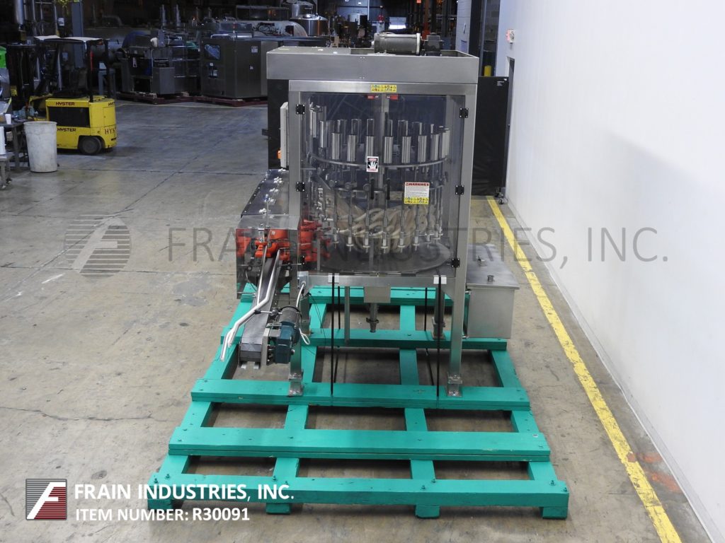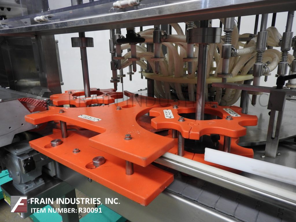 KAP所有,型号FA-R-24,自动,24头,不锈钢,旋转压力填充物,每分钟60至240个容器 - 取决于材料,应用和机器配置。容器尺寸:直径最长为4½“:高达12英寸高度(具有适当的变化部件)。配备蜗杆螺丝到饲料和放电的星轮,46“OD表与(24)(5/8)”OD不锈钢喷嘴设置在5英寸中心,没有容器/无填充,43“长x 12”宽x16“深层产品储层。控制面板具有AB PLC,带AB PanelView 600触摸屏HMI和按钮开始/停止。安装在一个(4)腿框架上,安全门保护。