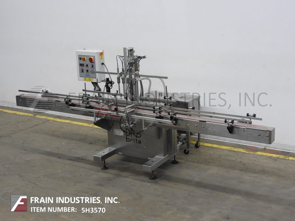Kaps所有型号FE4,半自动,2工位,4主轴,不锈钢,盖式干燥箱额定从5到90个容器每分钟-取决于材料,应用和操作熟练度。瓶盖尺寸范围:8毫米至70毫米,可处理大多数类型的瓶盖。容器尺寸范围:1盎司到加仑,塑料,金属或玻璃(都有适当的更换部件)。配备不锈钢容器输送机4-1/2"宽x 109"长塑料德林皮带和变速控制器,25"长x 1"宽单容器夹持皮带,手曲柄可调,并有(2)站(4)主轴无损坏帽顶顶段可调扭矩离合器与安全保护。控制面板有主轴和夹持器开/关开关,速度控制刻度盘,上升/下降开关,压力表和启动/ e-停止按钮。安装在带有调平支架的不锈钢U形框架上。