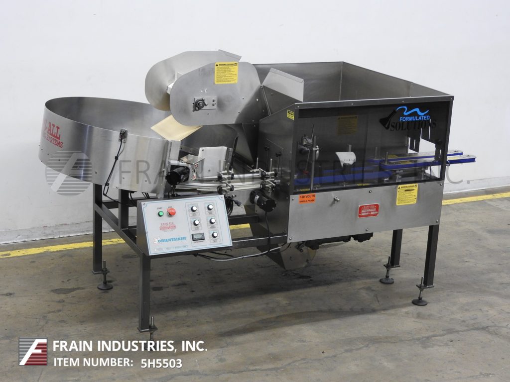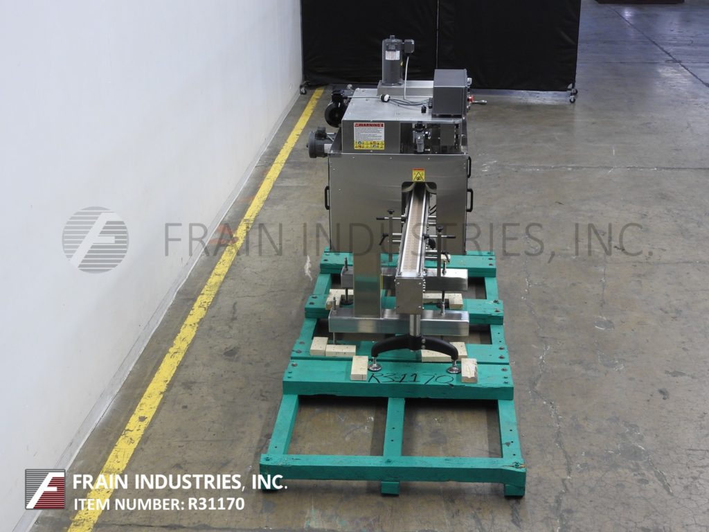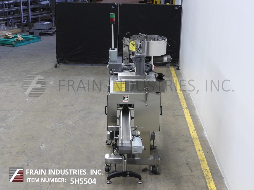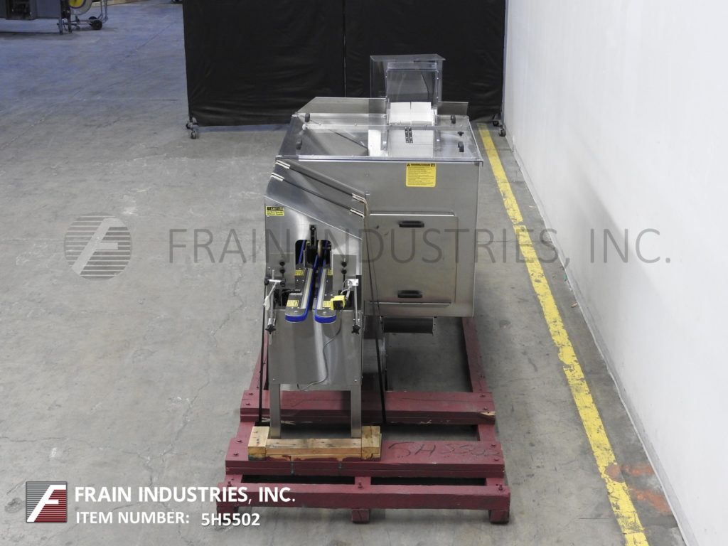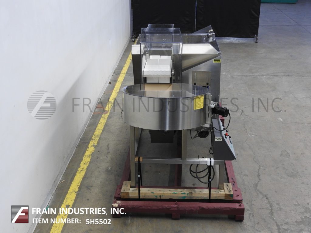 KAP所有型号AU-6,自动,不锈钢,塑料散装瓶拆卸,每分钟20到150个容器 - 取决于材料和应用。容器尺寸范围:1 / 16oz至1gallon,可以定位圆形,方形,矩形,椭圆形,锥形和F型容器(具有适当的变化部件)。配备楼层42“长x 36”宽x 36“深不锈钢饲料料斗,60”长x 19“宽夹板带送料器,带4”高夹板15“中心与塑料盖,42”OD分拣碗,与不磨损尼龙面,转移,取向和排出带,具有透明塑料铰接的安全防护。控制面板带供应料斗,载体带,送料器放电,旋转刮水器和馈线速度控制拨盘,e-stop按钮控制。安装在(4)腿框架上,带电平螺钉。