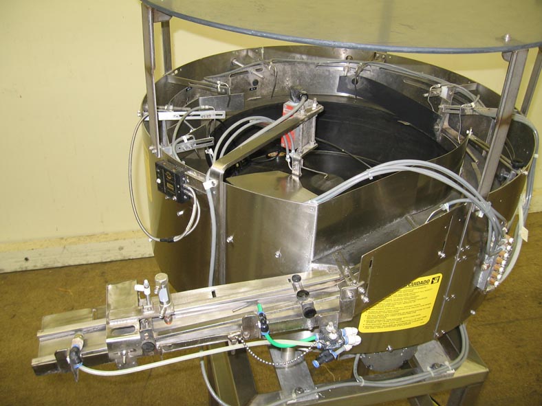 KAPS所有,36" OD,碗状进料器,能够供应帽其他部件每分钟数的 - 这取决于材料和应用配备36" 。OD和24" ID不锈钢产品喂料钵与36" 0D塑料盖具有10" OD产物进料口和滑槽,54" 高排出滑槽,并且能够handlng帽或零件高达120毫米OD的,最后做圆2-3 / 4" (68.75毫米)塑料盖。安装在(4)腿基座框架与调平螺钉。