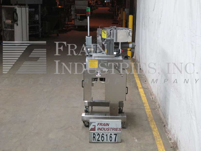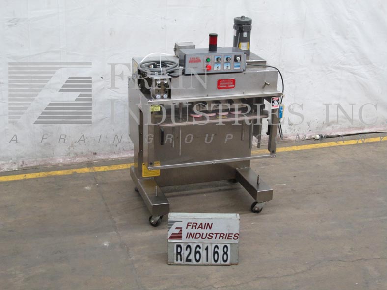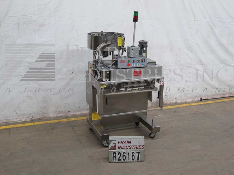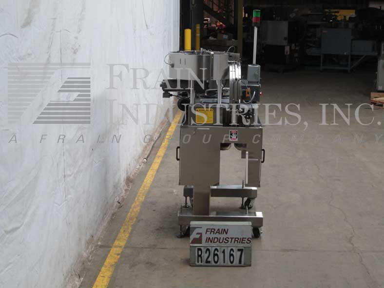 KAPS-所有型号FA-6,半 - 自动,不锈钢,以每分钟的容器数3工位(6主轴)封盖机 - 这取决于材料和应用。盖尺寸范围:8毫米120毫米。容器尺寸范围:1盎司到2-1 / 2加仑。配备有6" 宽×120" 长Delran输送机,32" 长×1/4" 宽单容器夹持器带,3台,6个主轴拉紧带可调扭矩离合器和安全防护。控制面板上有速度控制,升/降开关,启动/停止和急停控制。安装在具有脚轮不锈钢基架。