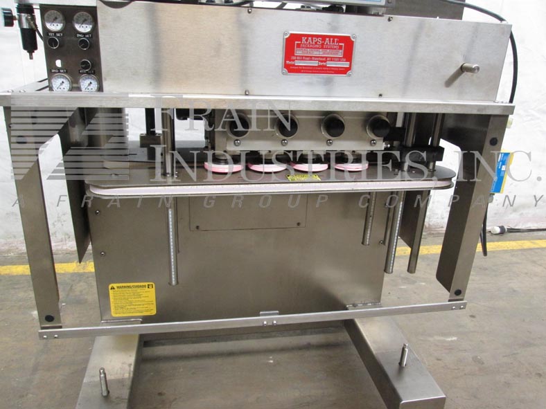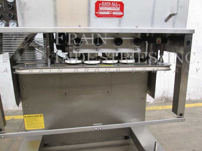 KAPS所有型号A,自动,直列,3台,从每分钟20至120个容器额定6主轴封盖机 - 这取决于材料和应用。帽的尺寸范围:13至110mm,容器尺寸范围:从低罐子和小瓶高达2-1 / 2加仑能够处理所有类型的帽包括防窃和防儿童和塑料,金属或玻璃的容器所有适当更换零件。配备KAPS全部36" 直径的碗状进料器54" 与碗,转台和主轴转速控制转盘高放电高度就急停按钮控制,并安装在(4)的腿的基座台与调平脚。主轴封盖机具有双重28" 长×1" 宽的双层容器夹持器带,3台,6主轴帽tightner部,控制面板具有开始,停止,紧急停止控制A / B CPU控制器。安装绘底座上。